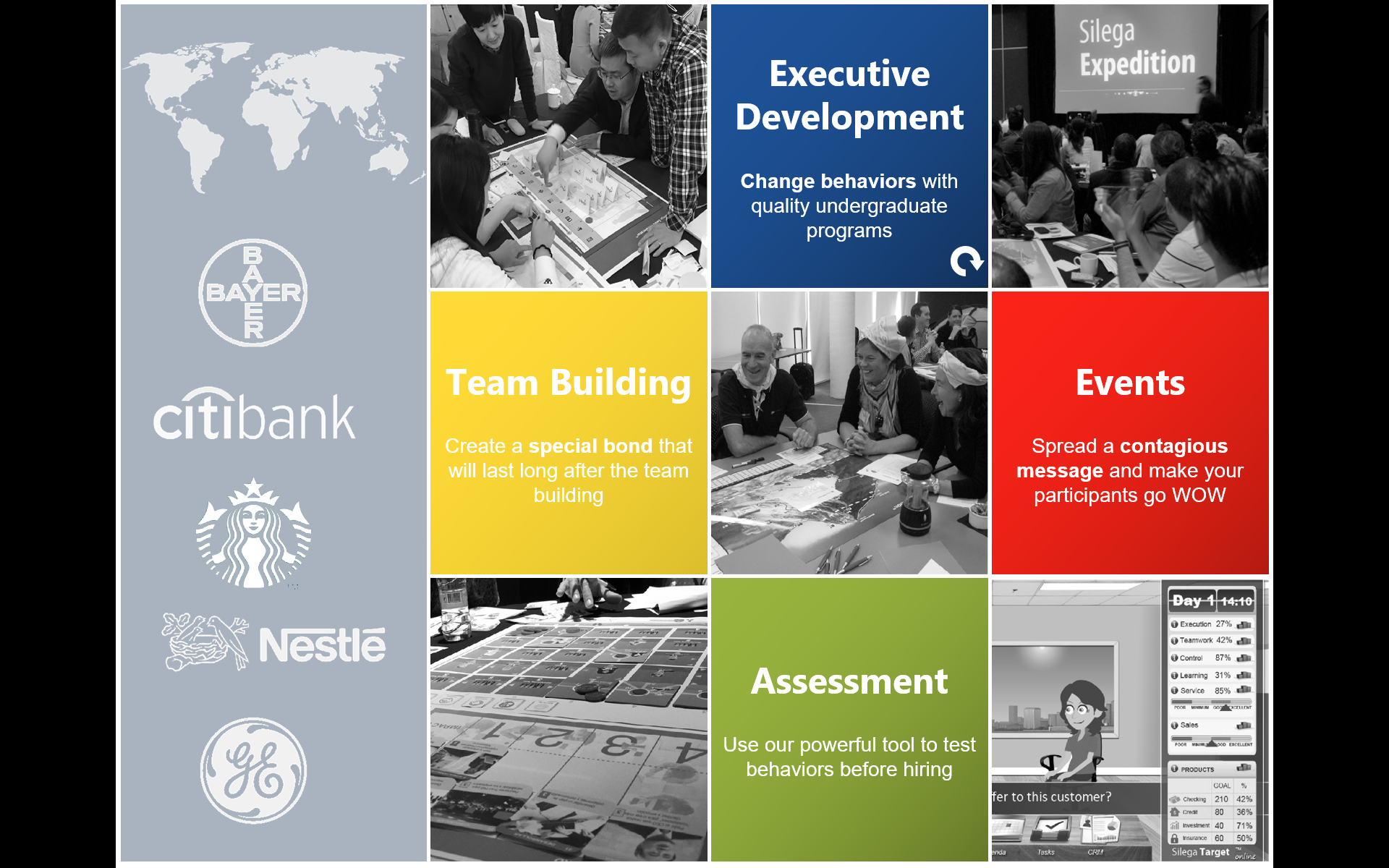 JC Training 取得 Silega 思力佳公司的體驗式學習課程 "超越顛峰"、"亞馬遜之眼" 台灣獨家代理權。Silega 思力佳公司的體驗式學習課程已經在全球超過 50個國家、81 萬名學員參與。