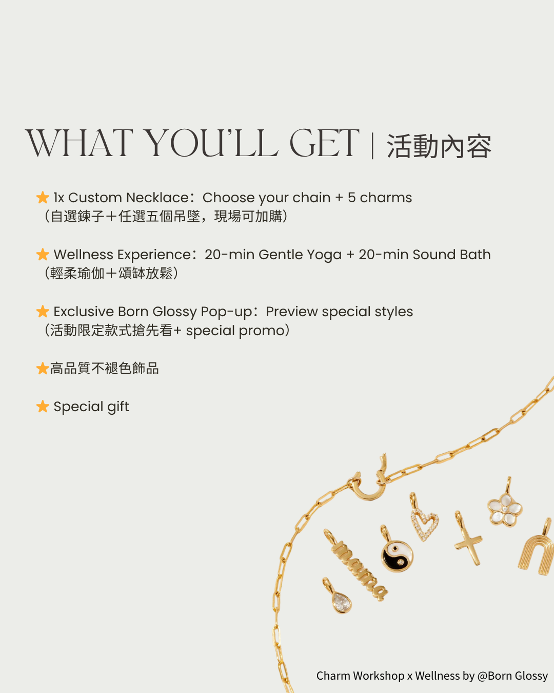 Born Glossy Charm Bar|自由搭配吊墜項鍊飾品體驗