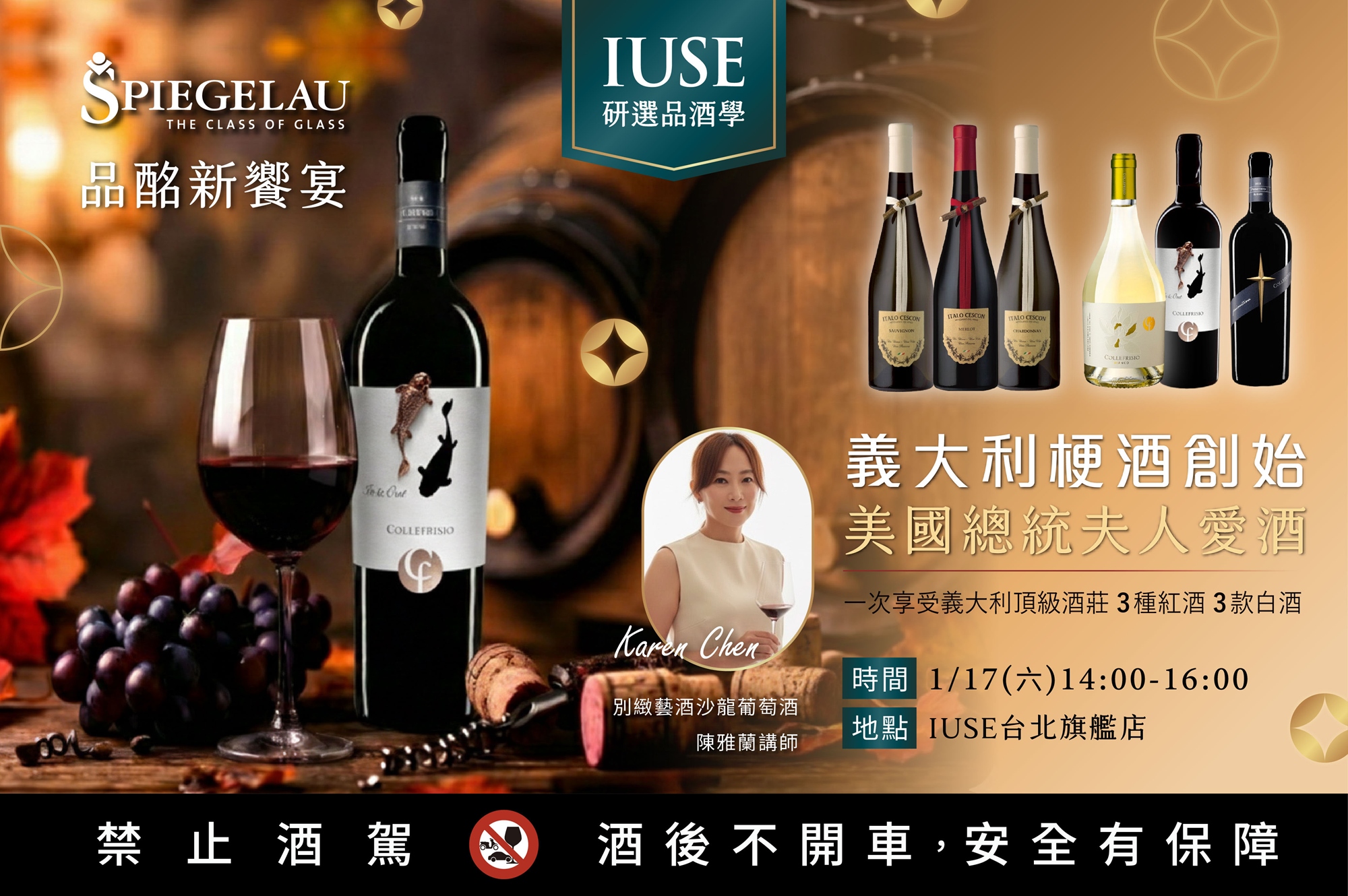 IUSE 研選品酒學,帶您探索兩大義大利頂尖精品酒莊「Italo Cescon 老梗酒莊、Collefrisio 菲力山酒莊」,品味擁有最高榮譽光環與政商名流青睞的葡萄酒,讓2026新年熠熠生輝!