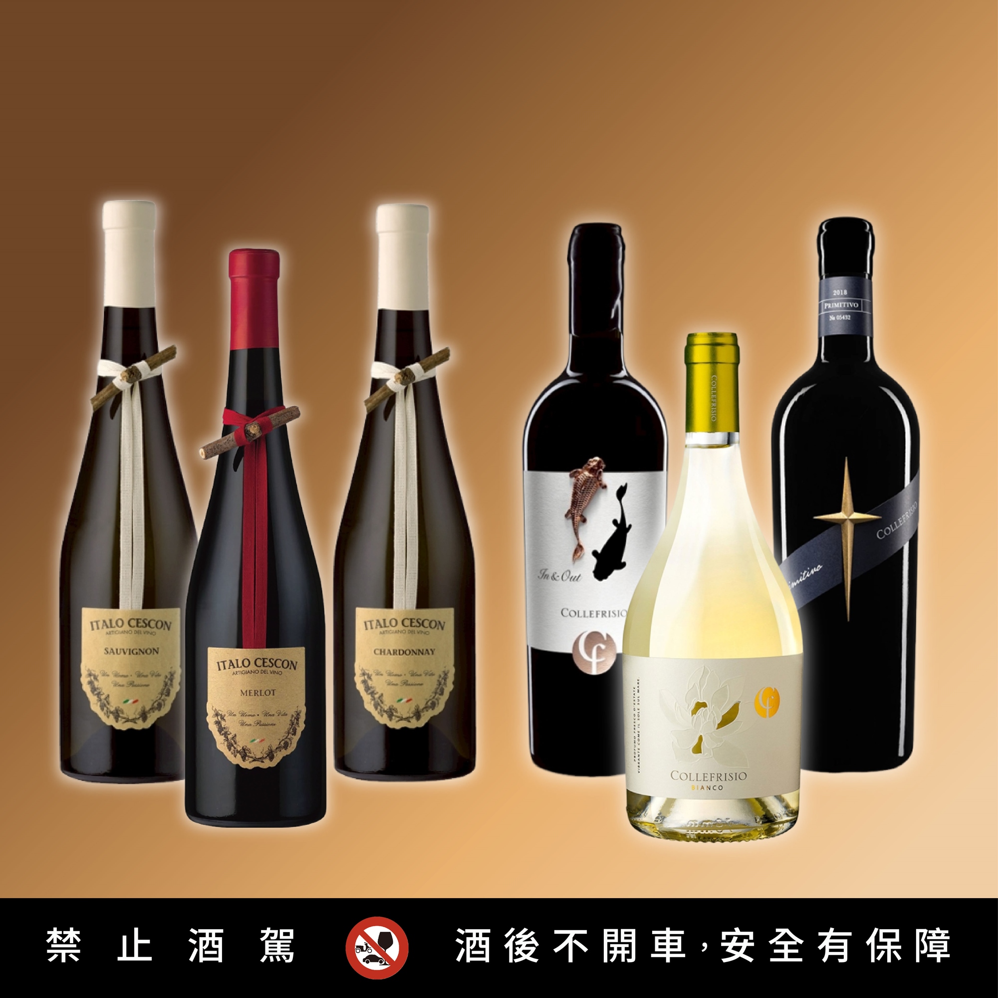 一次享受義大利頂級精品酒莊 3種紅酒 3款白酒