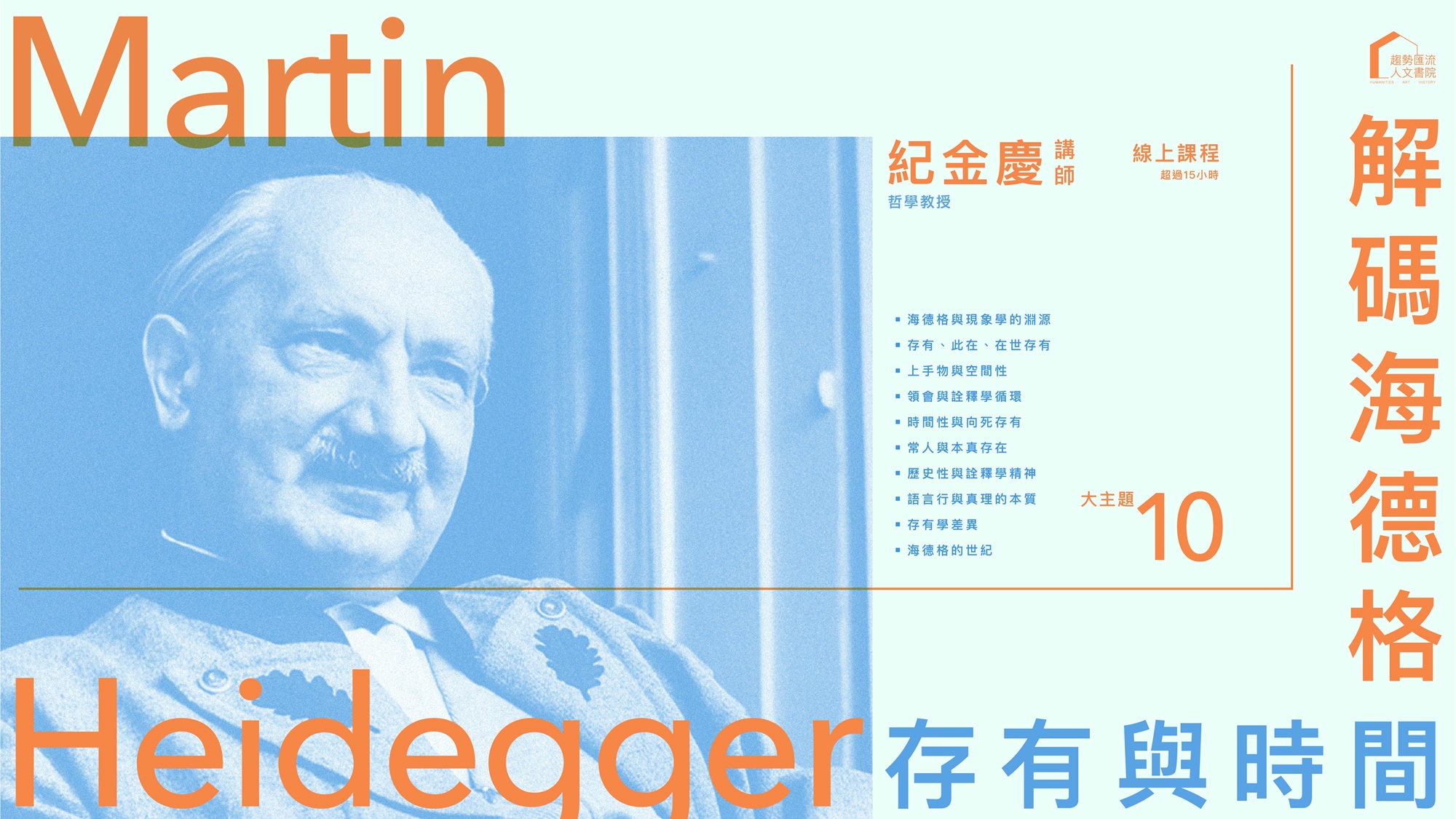 藉由紀金慶教授兼具學術深度與生活化講述的教學方式,本課程帶領學員進入《存有與時間》的核心問題:何謂「在世存在」?海德格指出,人之為「此在」並非抽象主體,而是透過日常性、語言、情緒與時間性始終被世界所規定;而焦慮則揭露此在面向有限性與自由的根本結構。本課程以十講建立清晰的概念地圖,使學員理解存在論如何改寫二十世紀哲學,也讓《存有與時間》從艱深文本轉化為能回應個體處境的思想資源,重新思考「如何在世界中存在」的問題。
