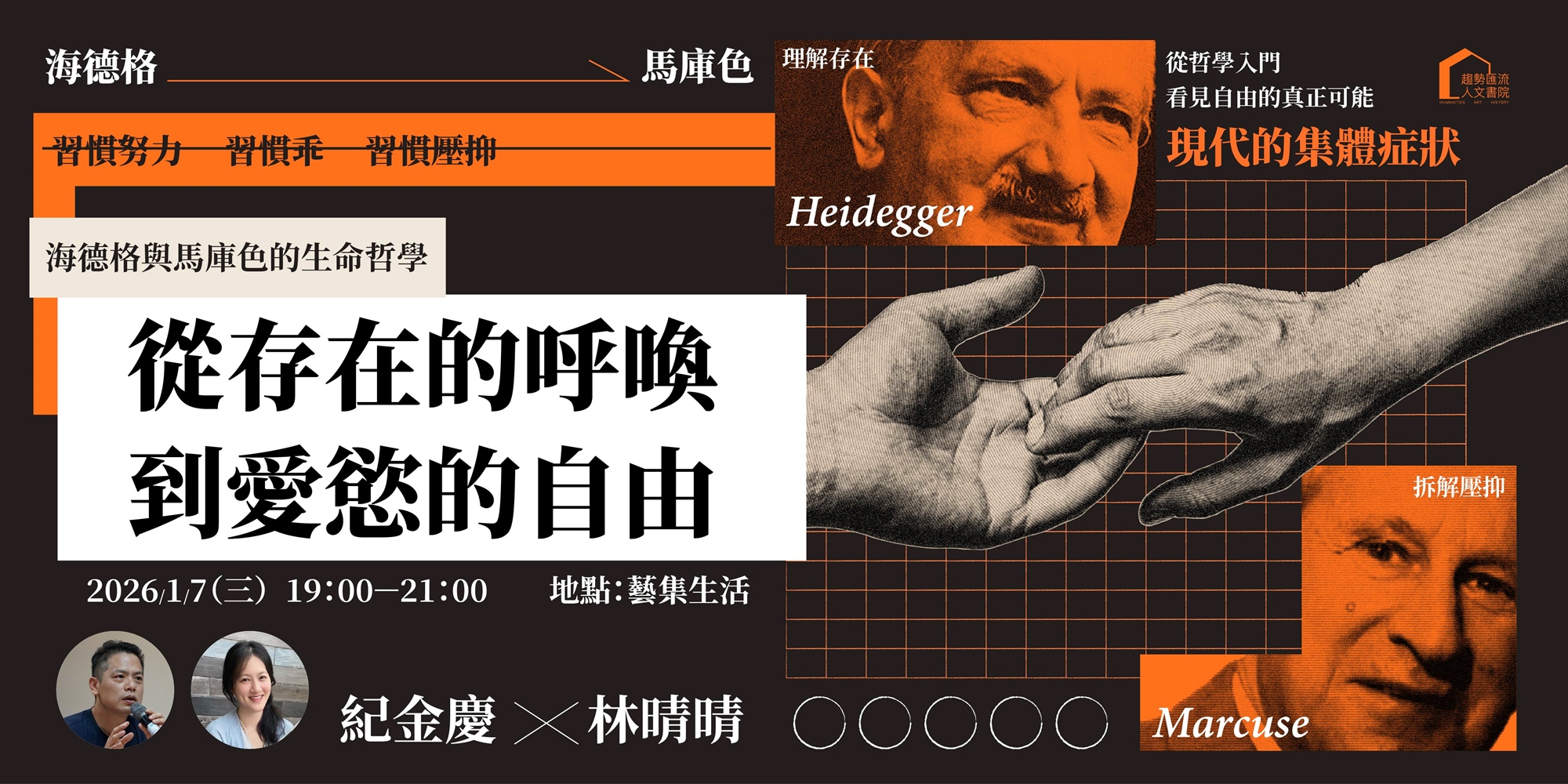 藉由紀金慶教授兼具學術深度與易懂講述的方式,本組合為學員能回到自身處境、重新思考現代生活的哲學進路。課程從海德格的存在論切入,透過「此在」、「在世存有」與「焦慮」等核心概念,揭示主體如何在世界中被開顯,理解焦慮作為面向自由與有限性的基本情緒;再以馬庫色《愛欲與文明》展開文明批判,分析現代社會如何以「額外壓抑」和柔性控制形塑欲望、勞動與生活,使疲倦不再被視為個人問題,是制度性結果。兩門課使學員能同時掌握存在的結構與文明的運作方式,理解疲倦與焦慮的根源,並在哲學層次上重新思考自由與生活可能性的開啟。
