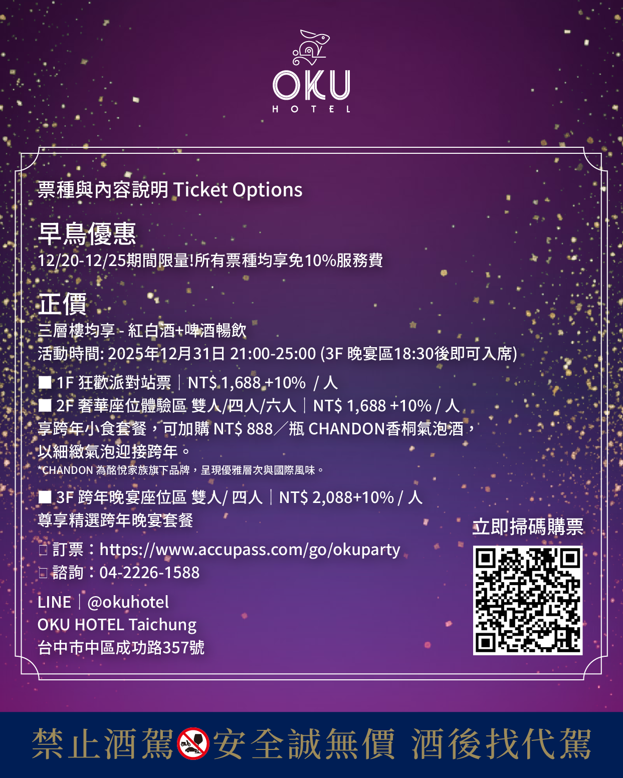 活動時間: 2025年12月31日 21:00-25:00 (3F 晚宴區18:30後即可入席)