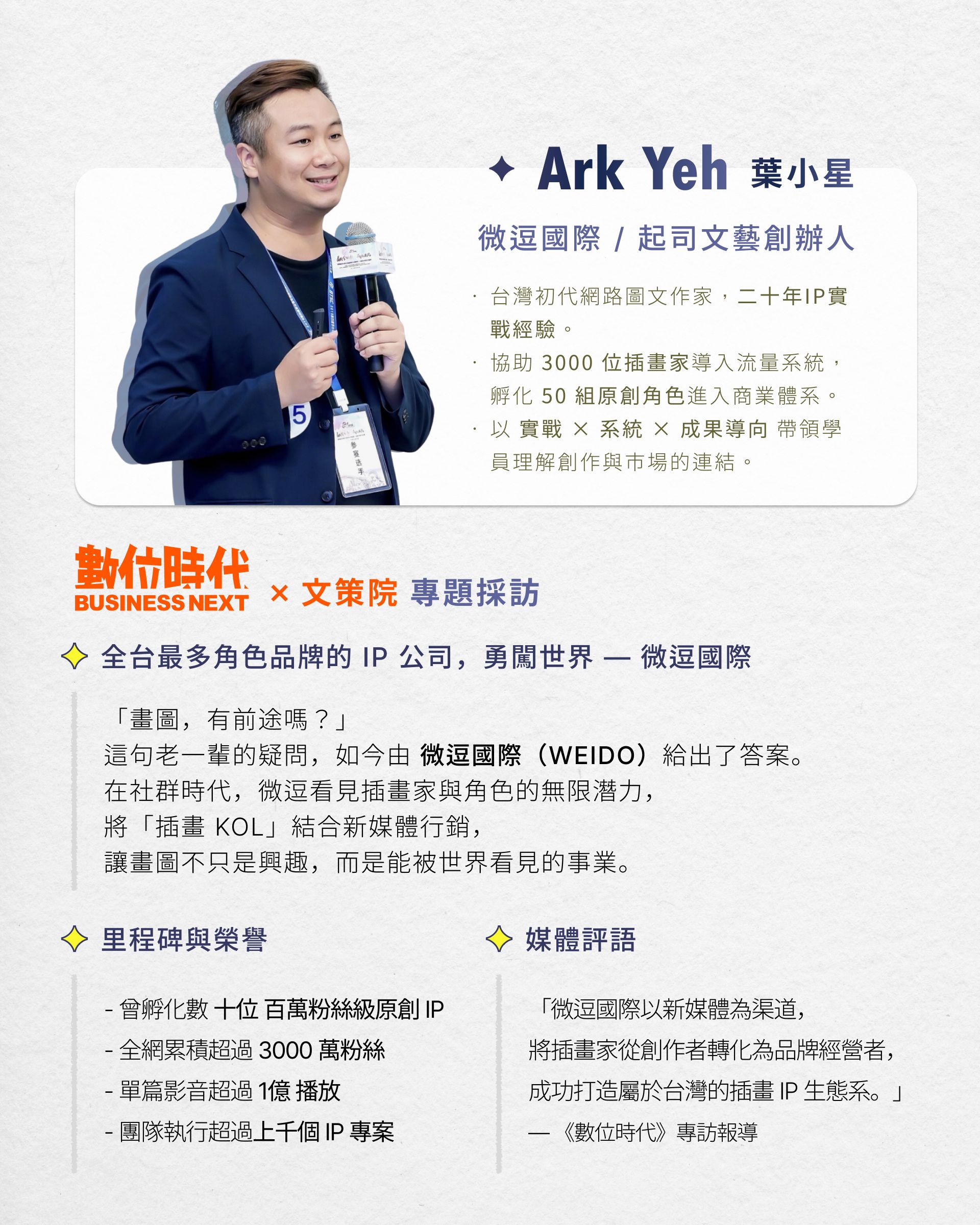 ✔ 現場加碼實戰健檢:你的 IP 體質健康嗎?幫你看懂你的商業潛力在哪裡!