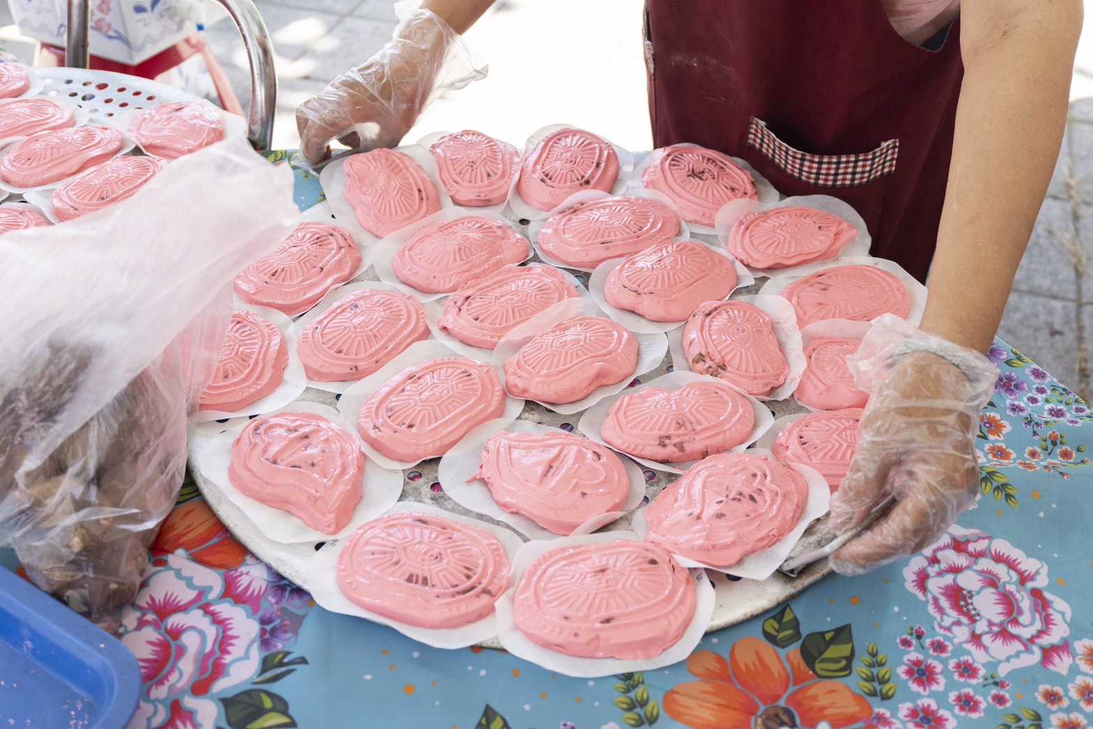 客家人的傳統習俗元宵時會吃「龜粄」,此次現場包龜粄,並現場蒸熟,並搭配客家的地瓜粄、芋粄及紅粄,共四個粄給民眾帶回家。