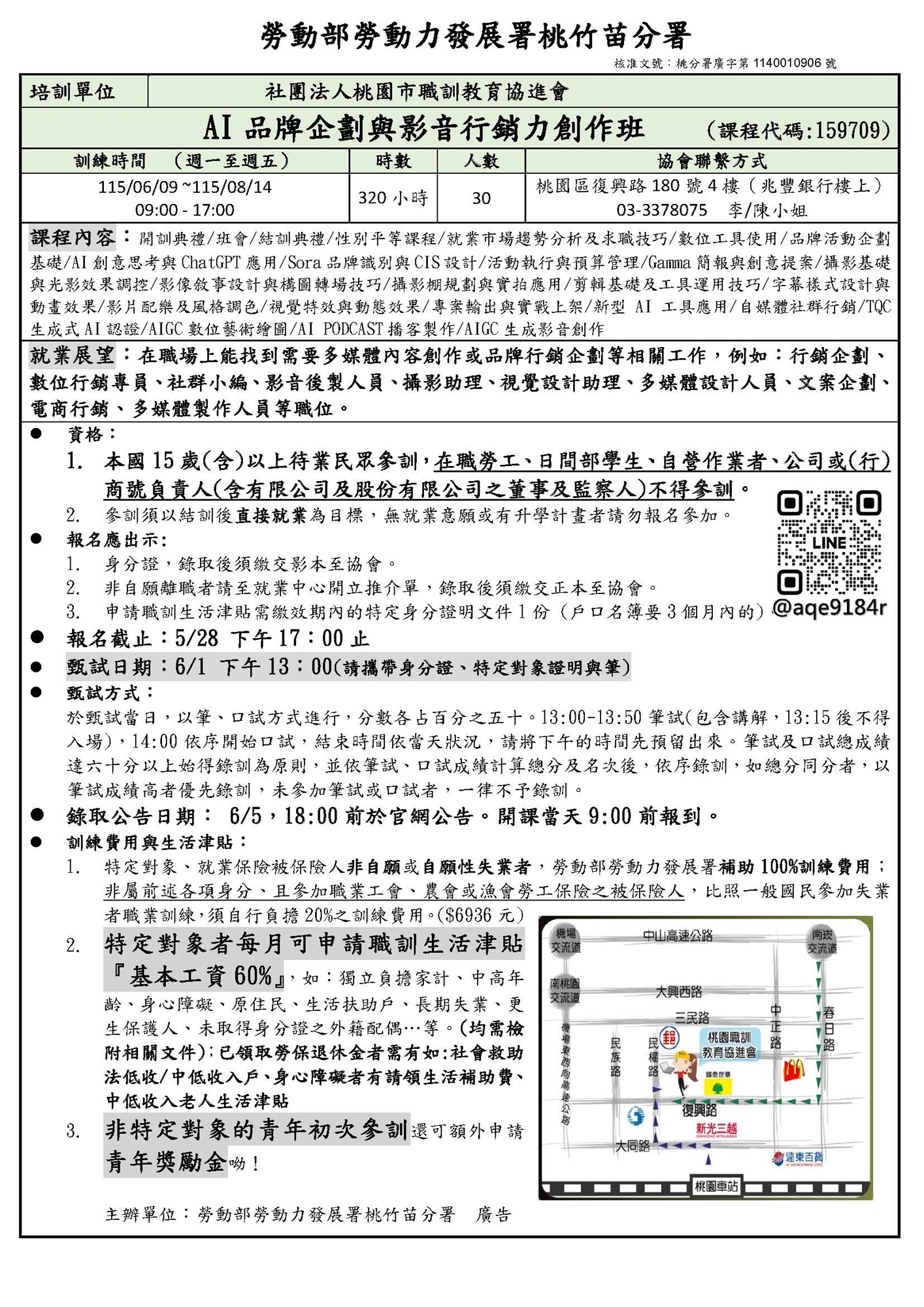 115年職前訓練-AI品牌企劃與影音行銷力創作班(請至協會現場報名)