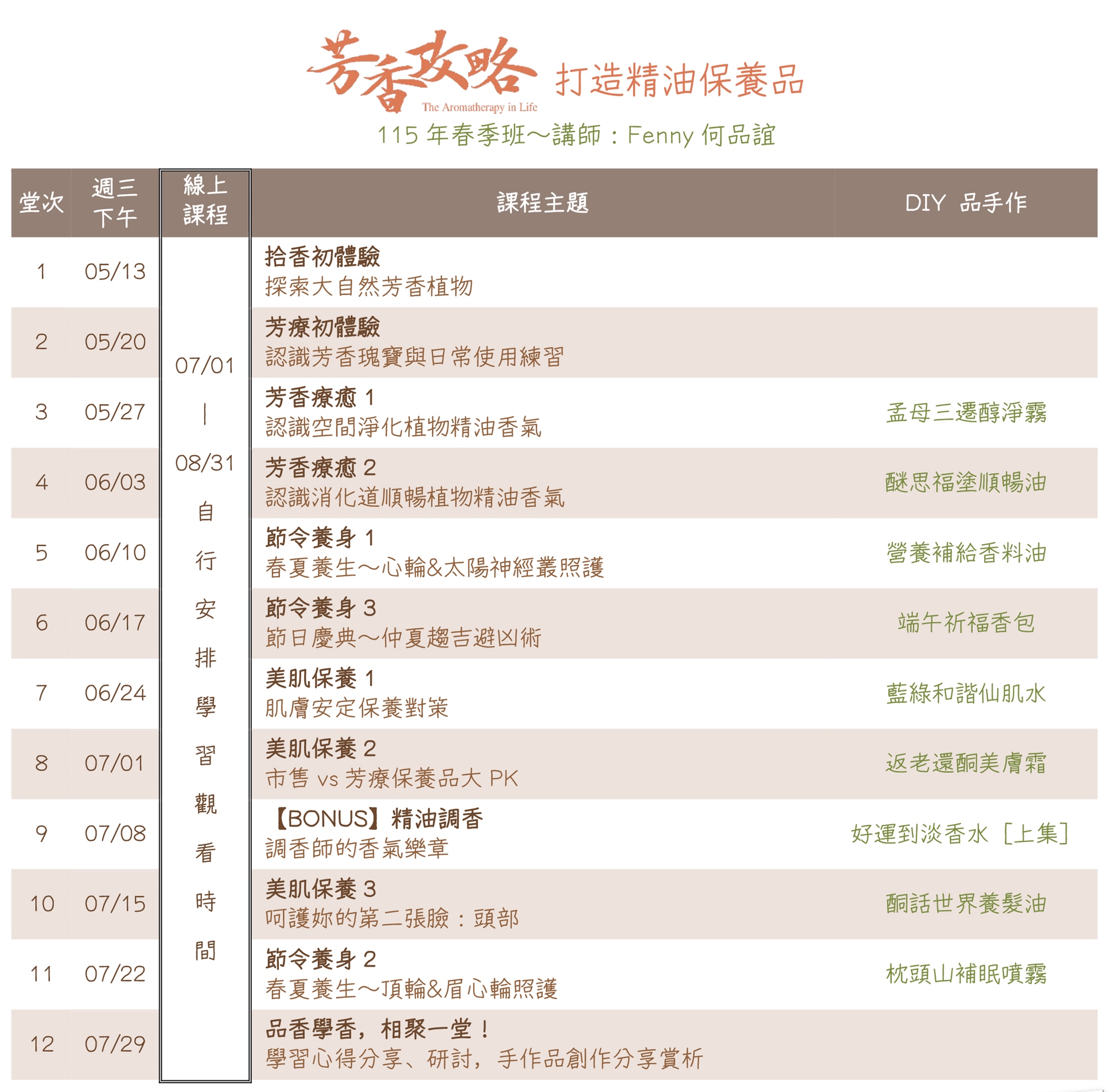 - 當次課程講義與手作配方