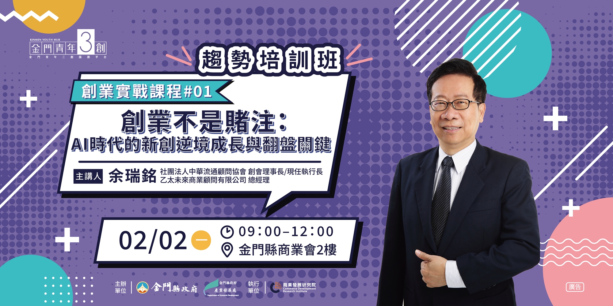 本系列「創業實戰班」課程,聚焦創業初期與成長階段最關鍵的實務議題,並以「創業決策 → 品牌定位 → 行銷曝光 → 成交轉換」為核心學習架構,透過不同主題的單堂課程與系統化、循序漸進的課程設計,協助創業者建立正確的決策思維、強化品牌溝通能力,補齊常見的經營斷點,進而提升行銷執行與實際轉換成效,建立可實際應用的經營思維與行動策略。