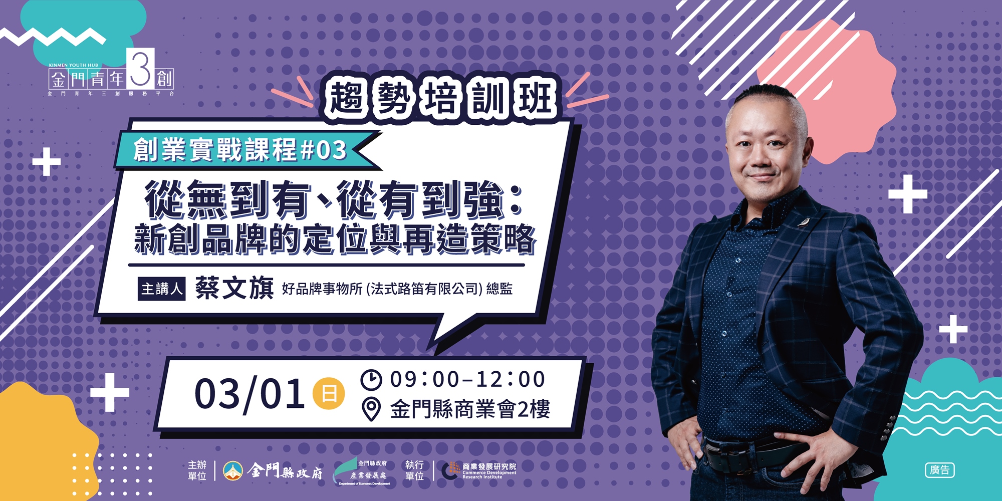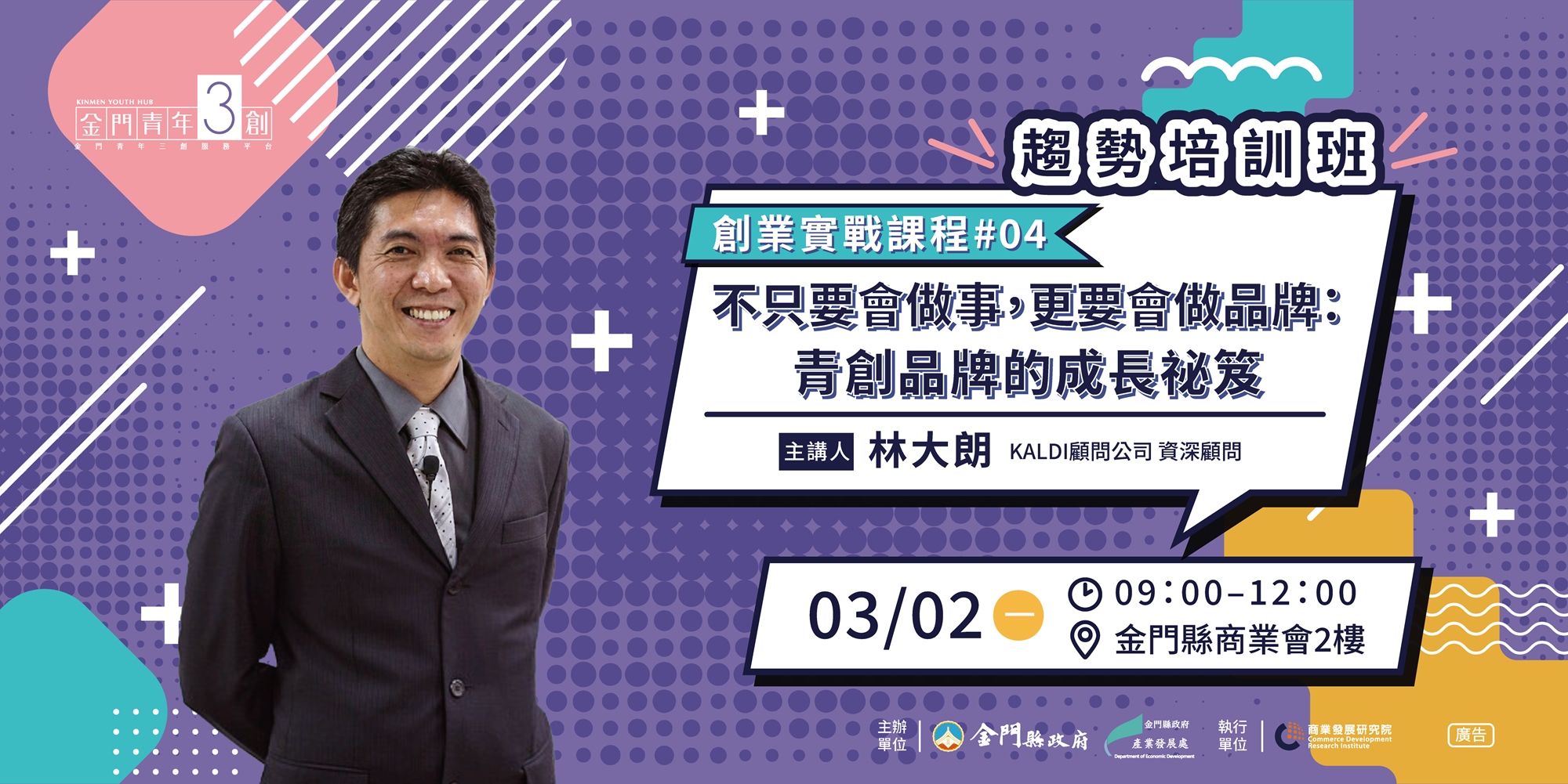 『創業實戰課程 #04』03/02|不只要會做事,更要會做品牌:青創品牌的成長祕笈