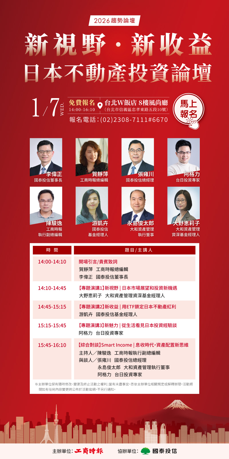 立即報名,你將獲得日本市場觀察與趨勢、投資日本不動產核心策略!