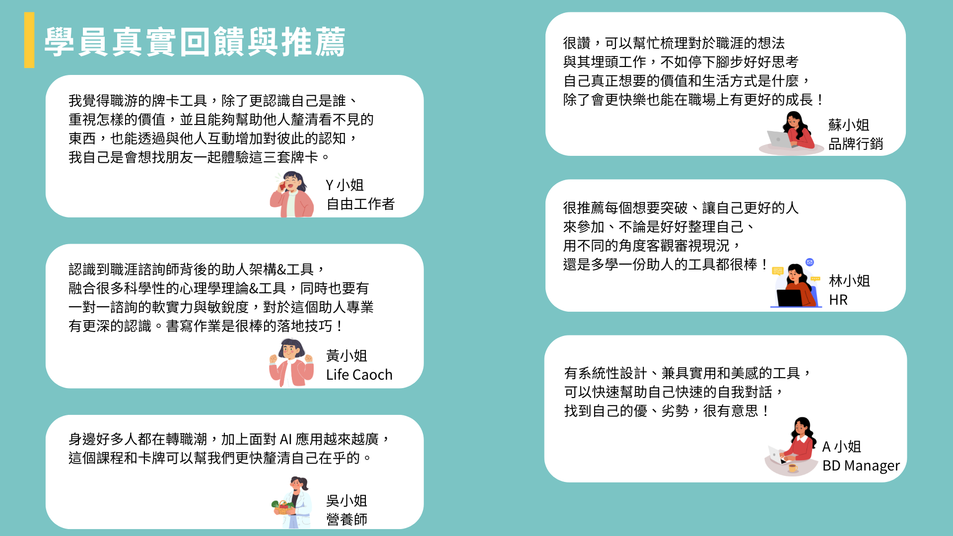 以上費用已包含三套牌卡、講義與運費。如對課程還有更多想了解的地方,歡迎加入 職游 Line 官方,了解更多資訊!