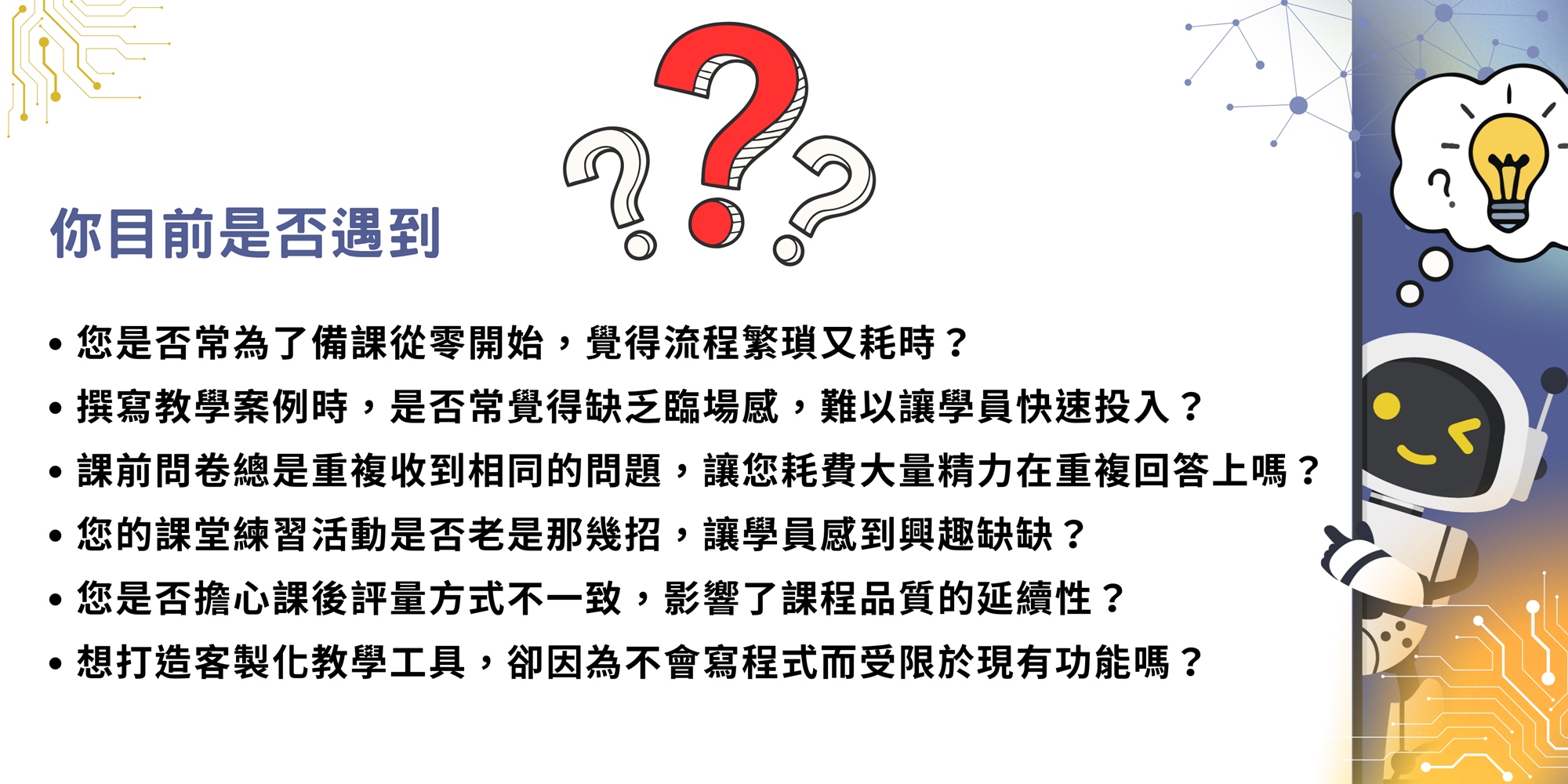 把生成式 AI 直接導入你的備課、授課與教學工具開發之中。
