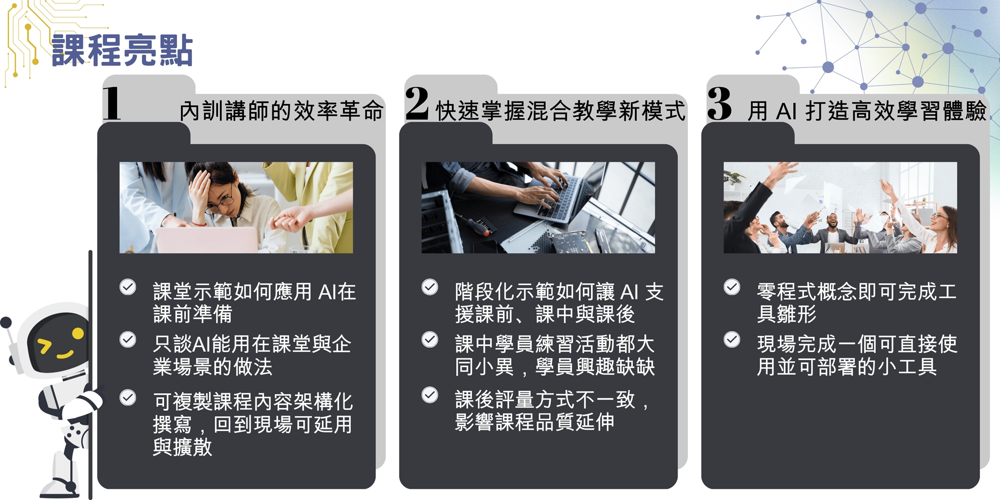 - 熟練使用生成式 AI 進行課程設計與教材開發