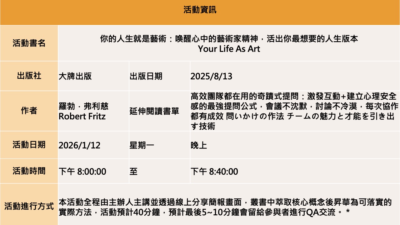 【BookBook預約線上讀書會】你的人生就是藝術:喚醒心中的藝術家精神,活出你最想要的人生版本