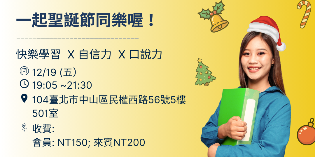 ﹝英文口說、聖誕活動、口語表達、認識新朋友、職場﹞2025/12/19 民權西路站 Toastmaster 吐司會