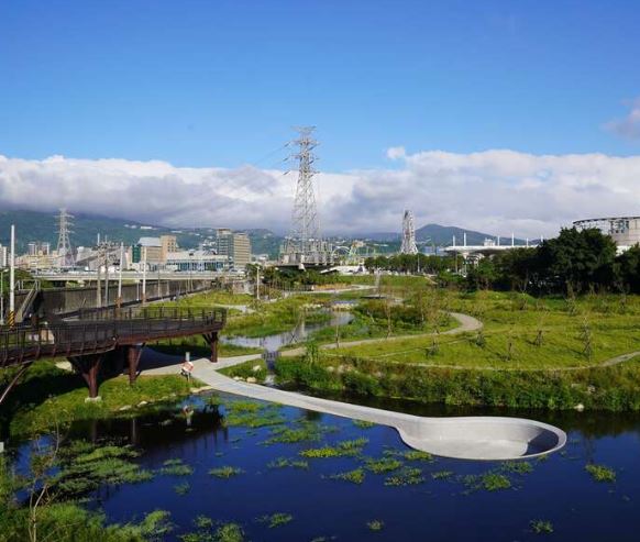 「和尚州」:這裡是淡水河與基隆河匯流後,一同流向臺灣海峽的起點。站在公園內,可以清晰地看到兩條河流交匯的水流和顏色變化。