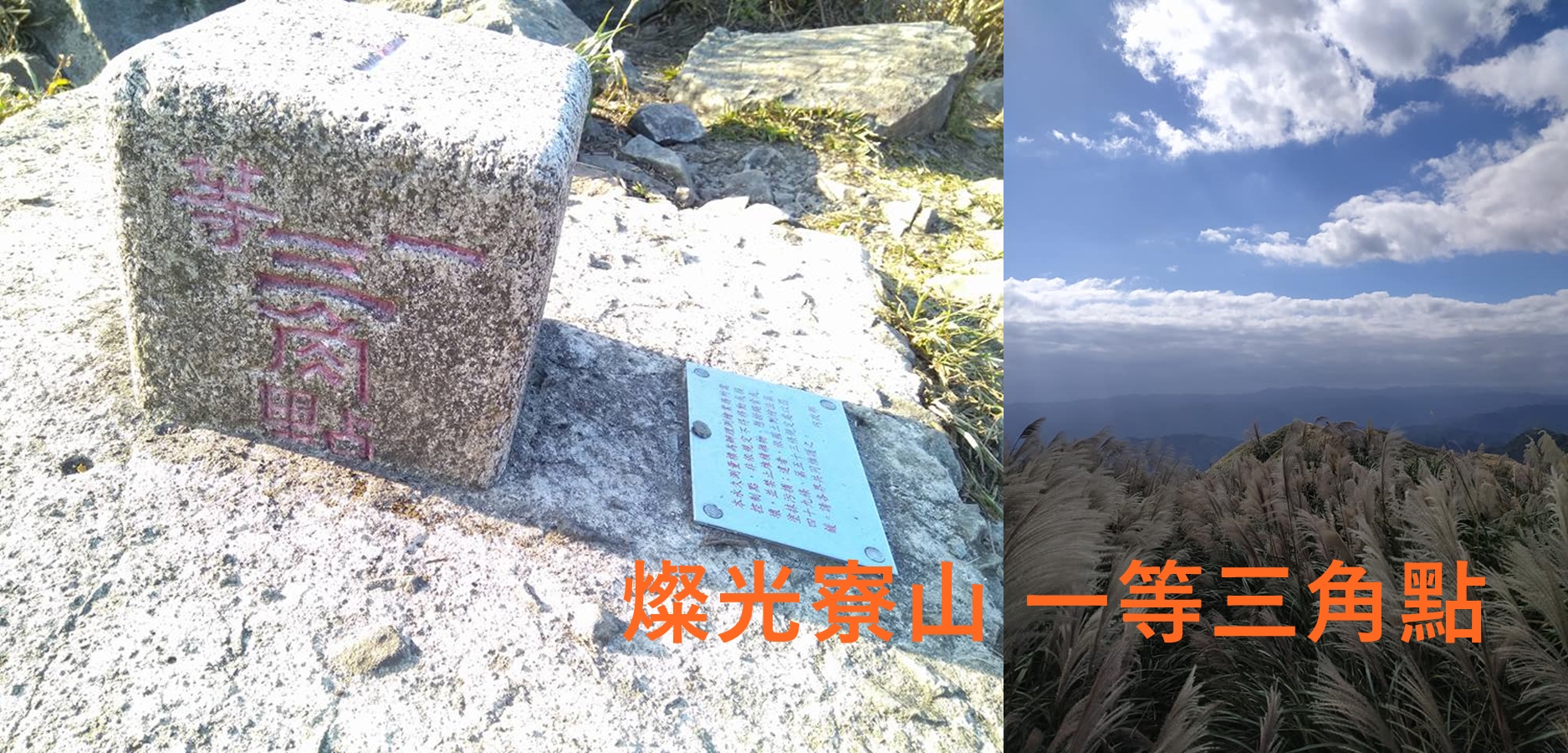 燦光寮山:海拔739公尺,是基隆火山群裡最高的一座山頭,茂盛的芒草是這一帶山區的特色,最著名的一等三角點。登此山有不同路線,有一點挑戰性,安排從最近登山口登頂,省去時間和體力,往返約一個小時多。