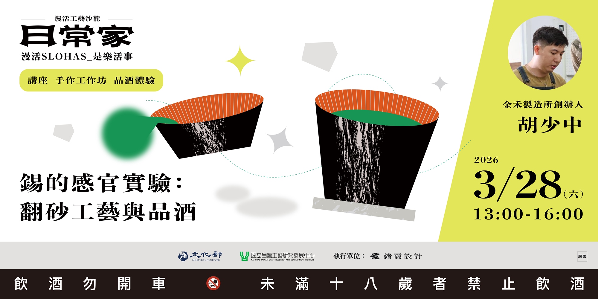 從金屬工藝出發,認識錫金屬的材料特性、模具結構與翻砂鑄造的基本原理,理解工藝製程、器物使用與生活感官之間的關聯;後半段透過酒器鑄造與拋修的實作體驗,運用翻砂成形與手工打磨完成器物,體驗以溫和而細緻的方式品酒,回應日常使用與感官感受。