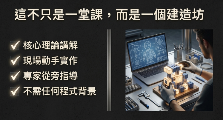 這堂課會簡單的交代理論,但是更著重在實作,讓你帶走 AI 助理,成為你真正的工作夥伴。
