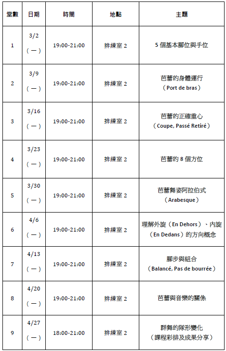 ※註:需自備舞衣、舞襪、軟舞鞋。