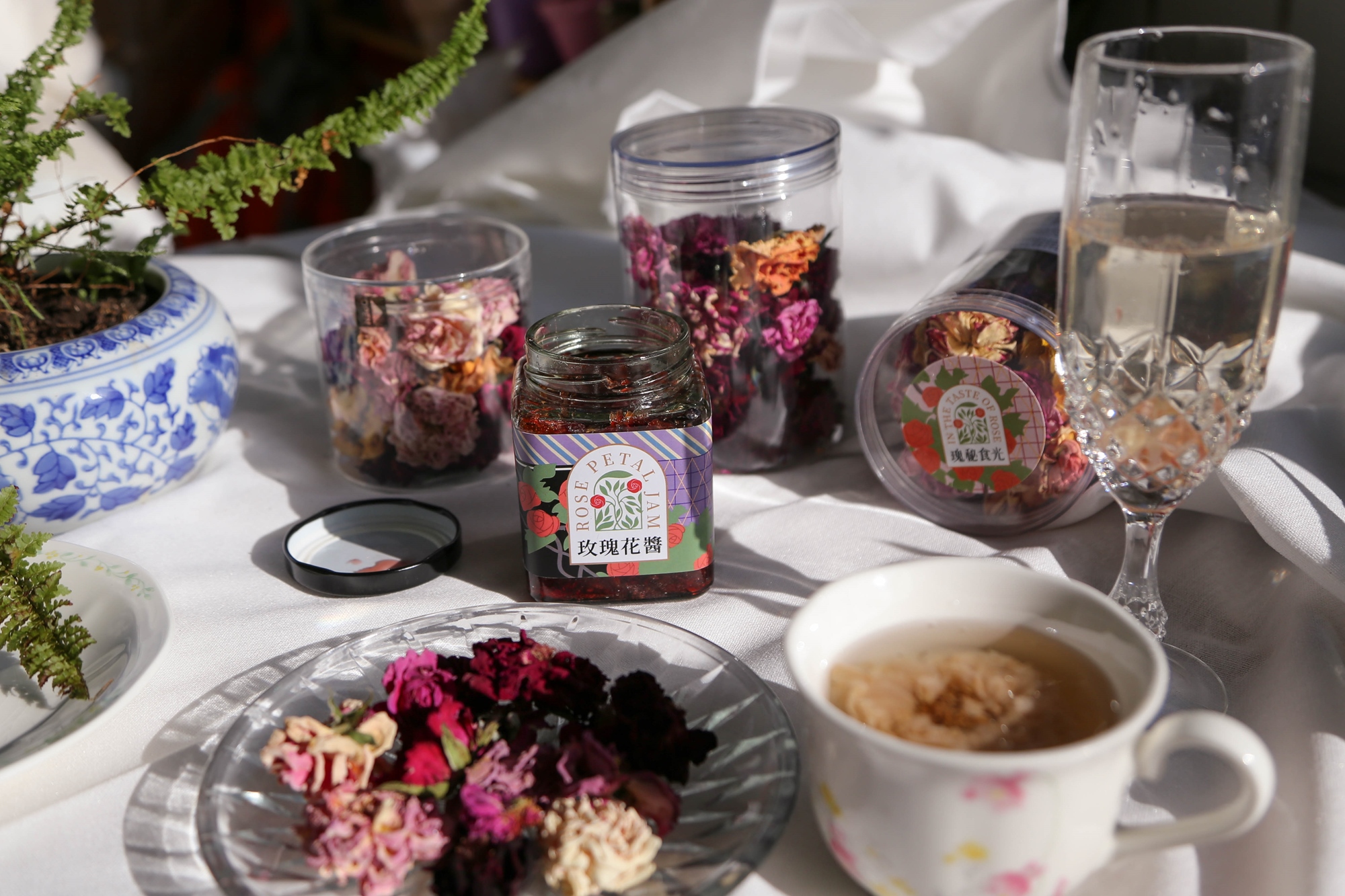 瑰秘食光在台中太平種植有機玫瑰,以鮮花和糖釀製,做成主打產品玫瑰花醬,以及整朵烘乾的玫瑰花茶,讓每一朵花都成為連結土地與女性力量的載體,讓玫瑰走進餐桌,在一口口的品嚐中療癒身心,找回平衡與美好生活。