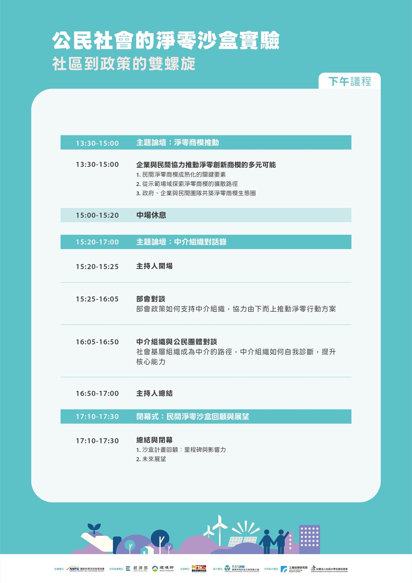 並與環境部共同培育「第三方中介組織」與社區多元綠領人才,透過組織力整合社區、政策、資源,以深化民間淨零網絡及其擴散力道。