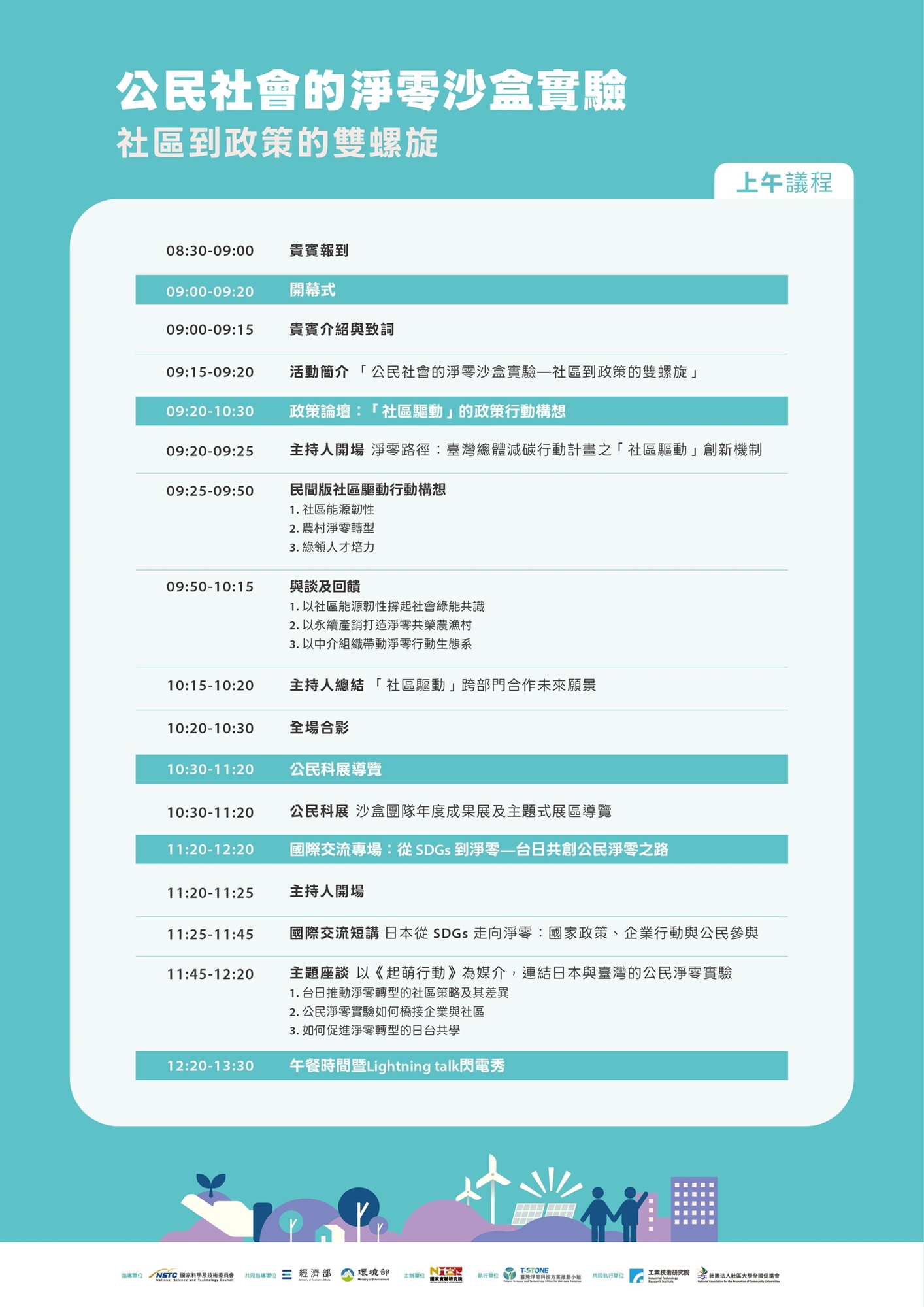 提供自由的交流空間,由各計畫團隊進行五分鐘短講,分享計畫經驗及淨零解方