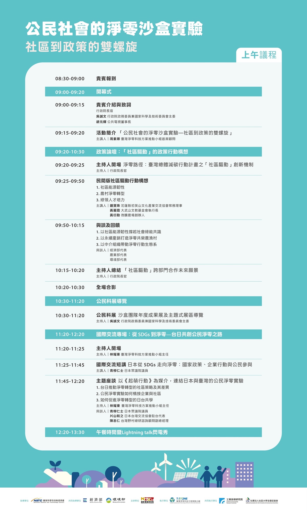 循此,國科會、經濟部與環境部於115年1月21日(週三)聯合辦理「公民社會的淨零沙盒實驗-社區到政策的雙螺旋」成果交流會,展現「社區驅動」的政策串聯、 跨界合作及國際交流等積極參與及階段性成果。