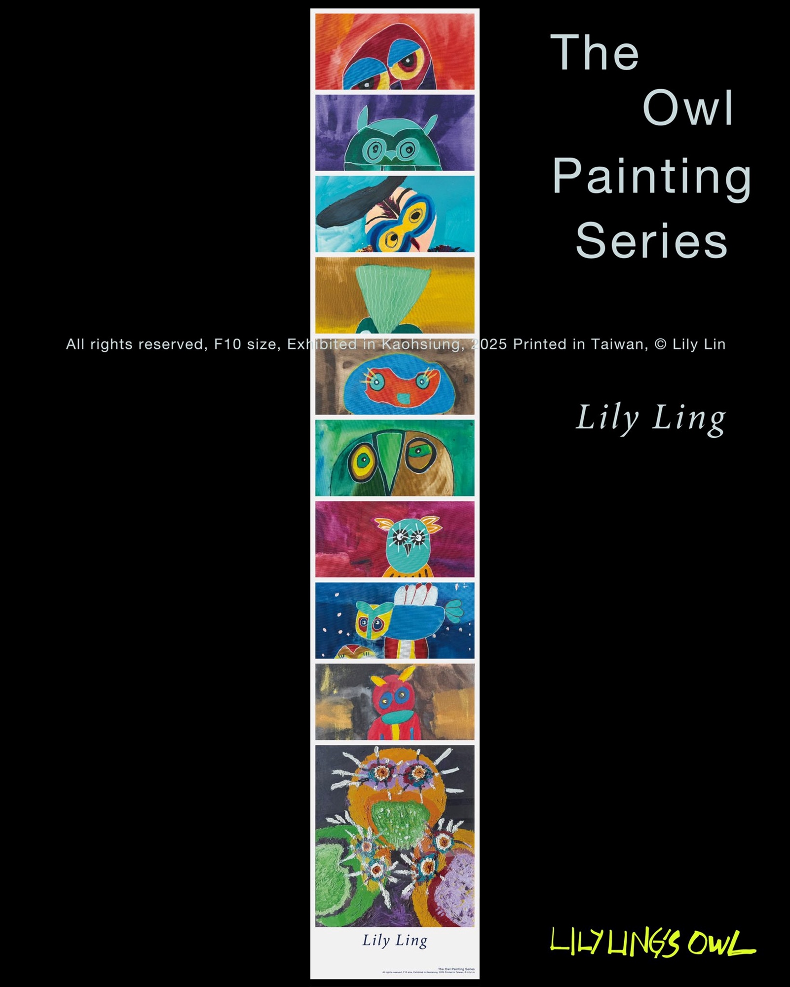 Lily Ling(陳奕綾)是一位唐氏症藝術家,自2025年起,她以貓頭鷹為主題,創作了五十餘幅不遵循比例的角色。那些在紙上反覆修補的色彩線條,讓我們得以窺見她眼中微微傾斜、卻鮮明的世界。在快速影像的時代,她的作品像春天的光,輕盈地在日常與想像之間起落。