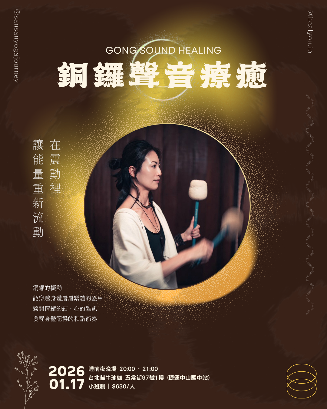 在這個冬日交替、能量緩緩轉動的時刻,我們以銅鑼的原始共振。深沉、寬廣、像宇宙脈動般的聲響,帶領你進入深層放鬆與能量校準。