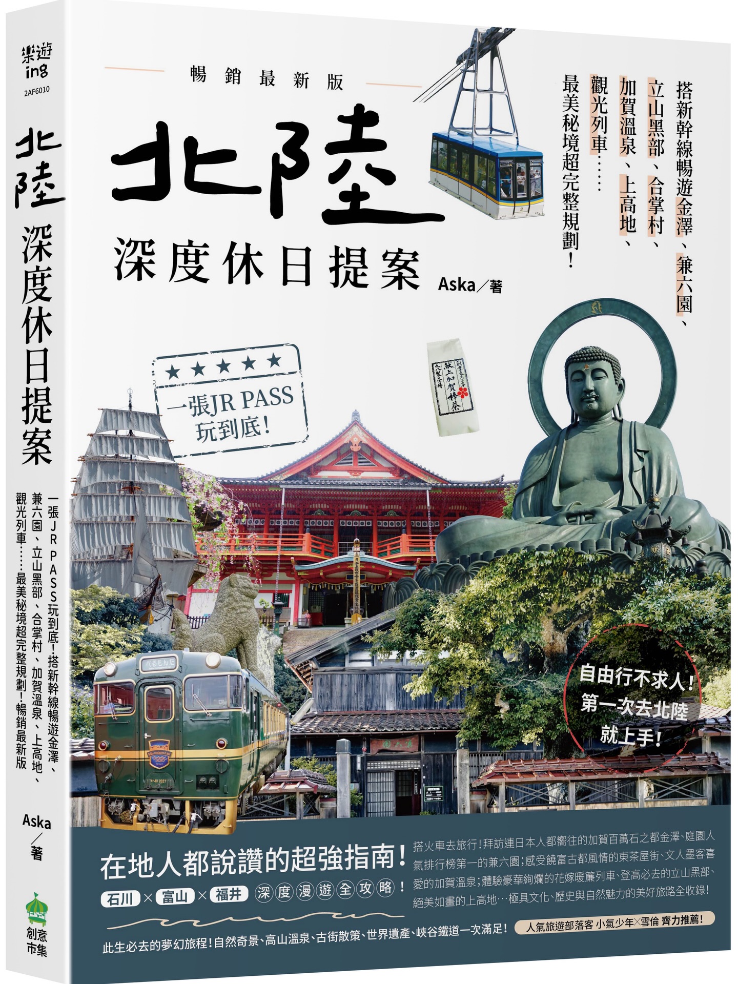 搭火車去旅行!拜訪連日本人都嚮往的加賀百萬石之都金澤、庭園人氣排行榜第一的兼六園;感受饒富古都風情的東茶屋街、文人墨客喜愛的加賀溫泉;體驗豪華絢爛的花嫁暖簾列車、登高必去的立山黑部、絕美如畫的上高地…極具文化、歷史與自然魅力的美好旅路全收錄!