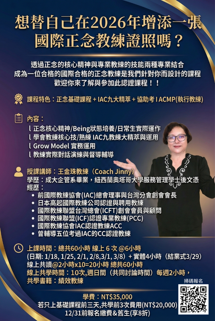 正念基礎課程+IAC九大精萃+協助考IACMP(執行教練)
