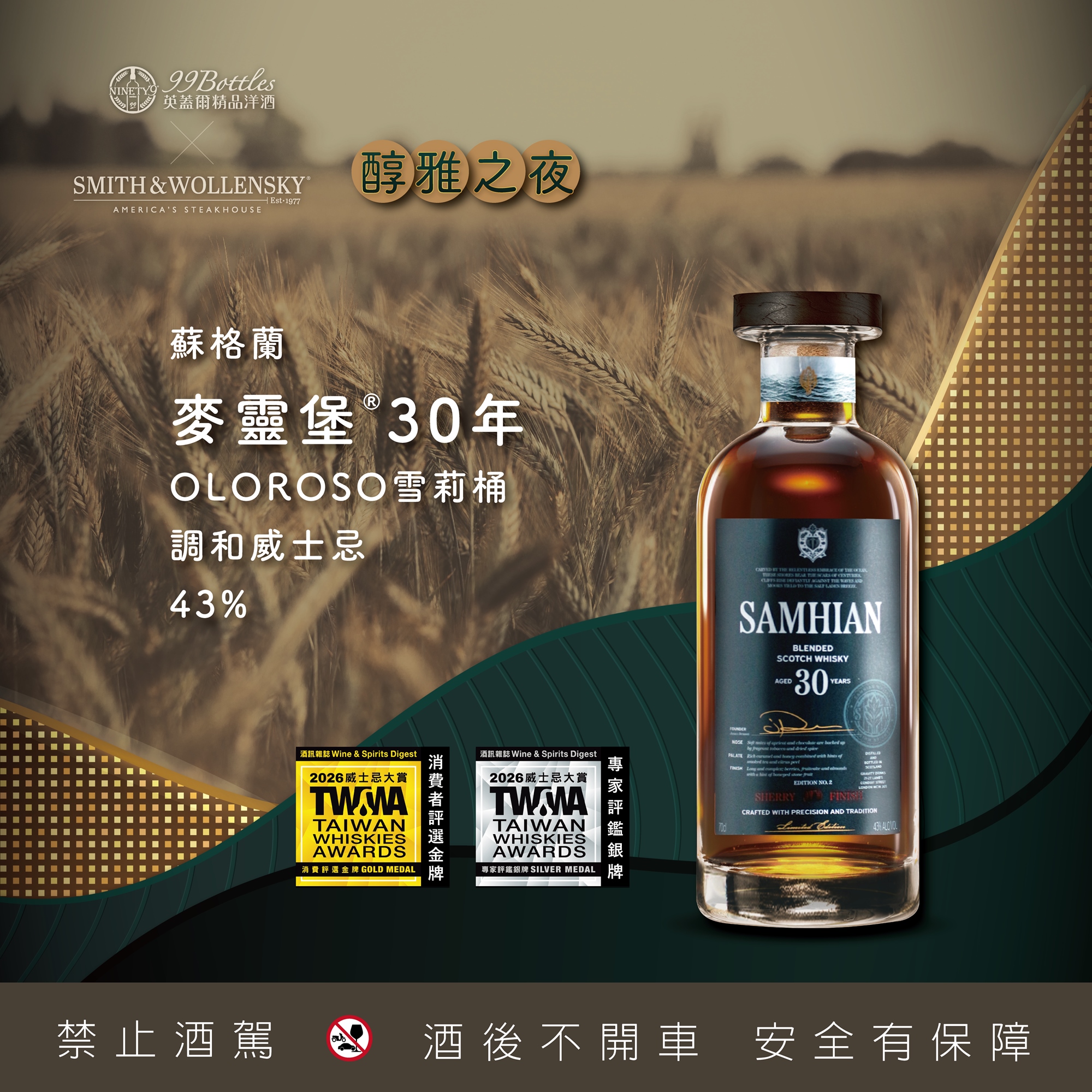 英蓋爾精品洋酒 X Smith & Wollensky【醇雅之夜餐酒會】