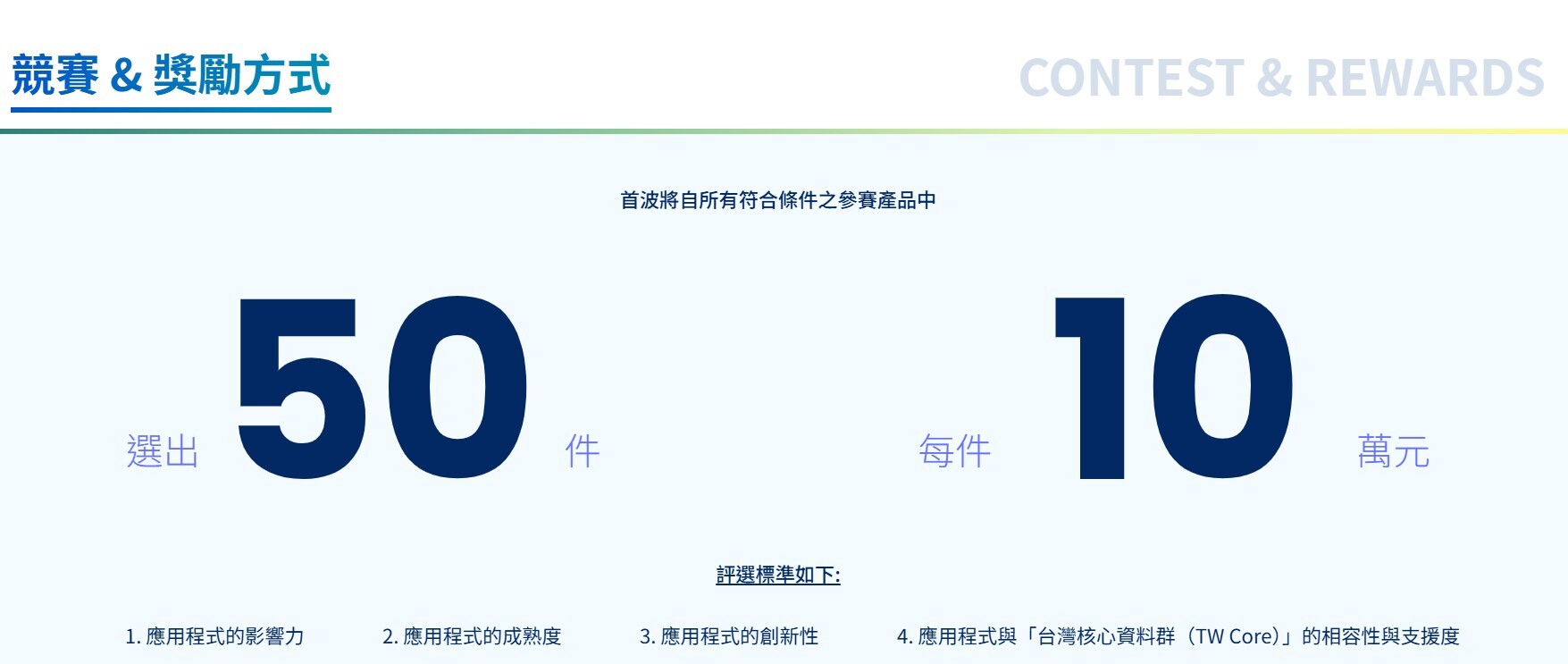 - 參賽者得依個人資料保護法第3條 行使查閱、補充、更正、製給複製本及請求停止蒐集、處理、利用或刪除等權利;資料若不完整或不正確,將可能影響參賽資格及後續審核與獎勵發放。