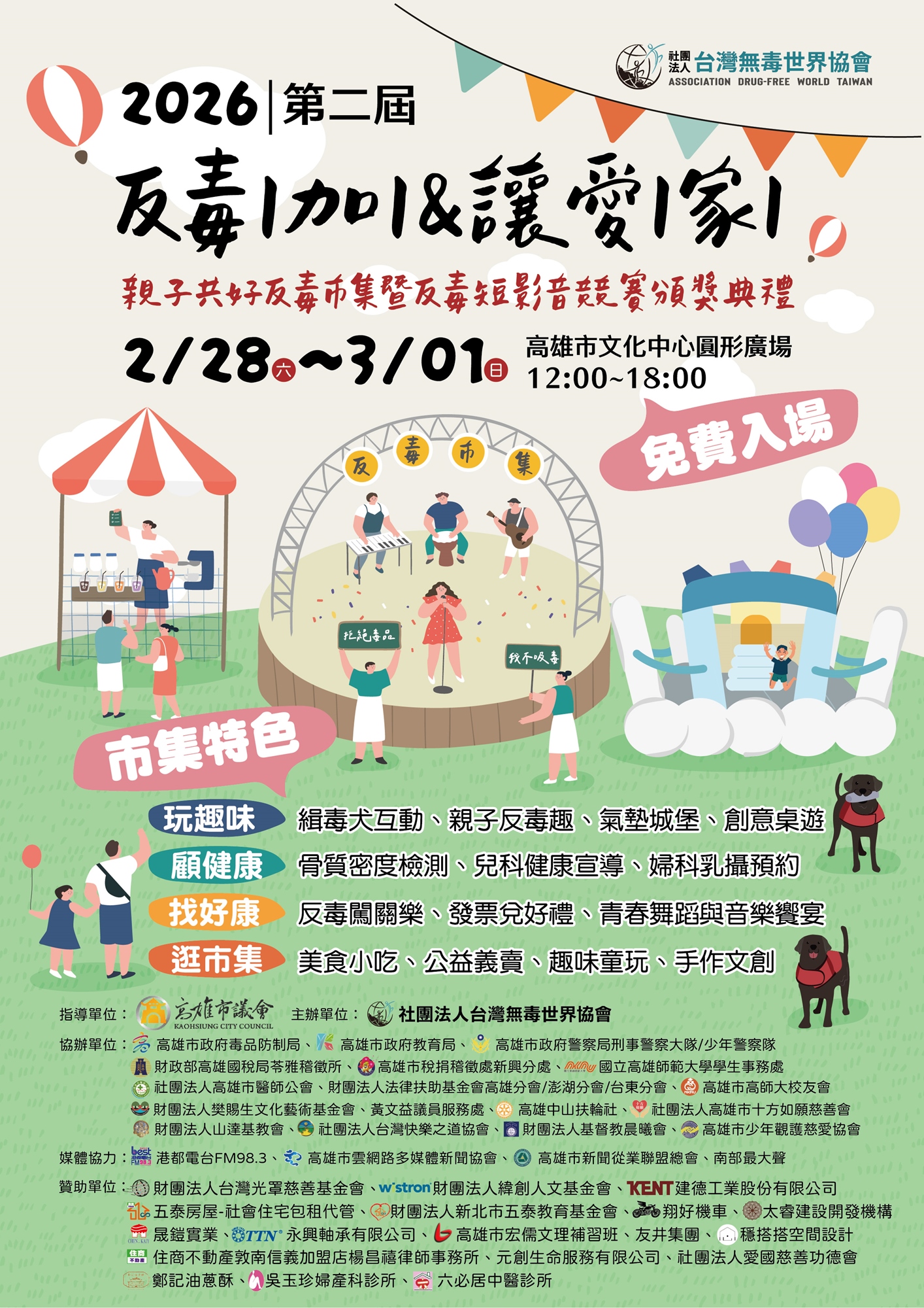 |協辦單位: 高雄市政府毒品防治局、高雄市政府教育局、高雄市政府警察局少年警察隊、高雄市政府警察局刑事警察大隊、高雄市高師大校友會、黃文益議員服務處、港都電台FM98.3、高雄中山扶輪社、社團法人高雄市十方如願慈善會、熱烈招募中