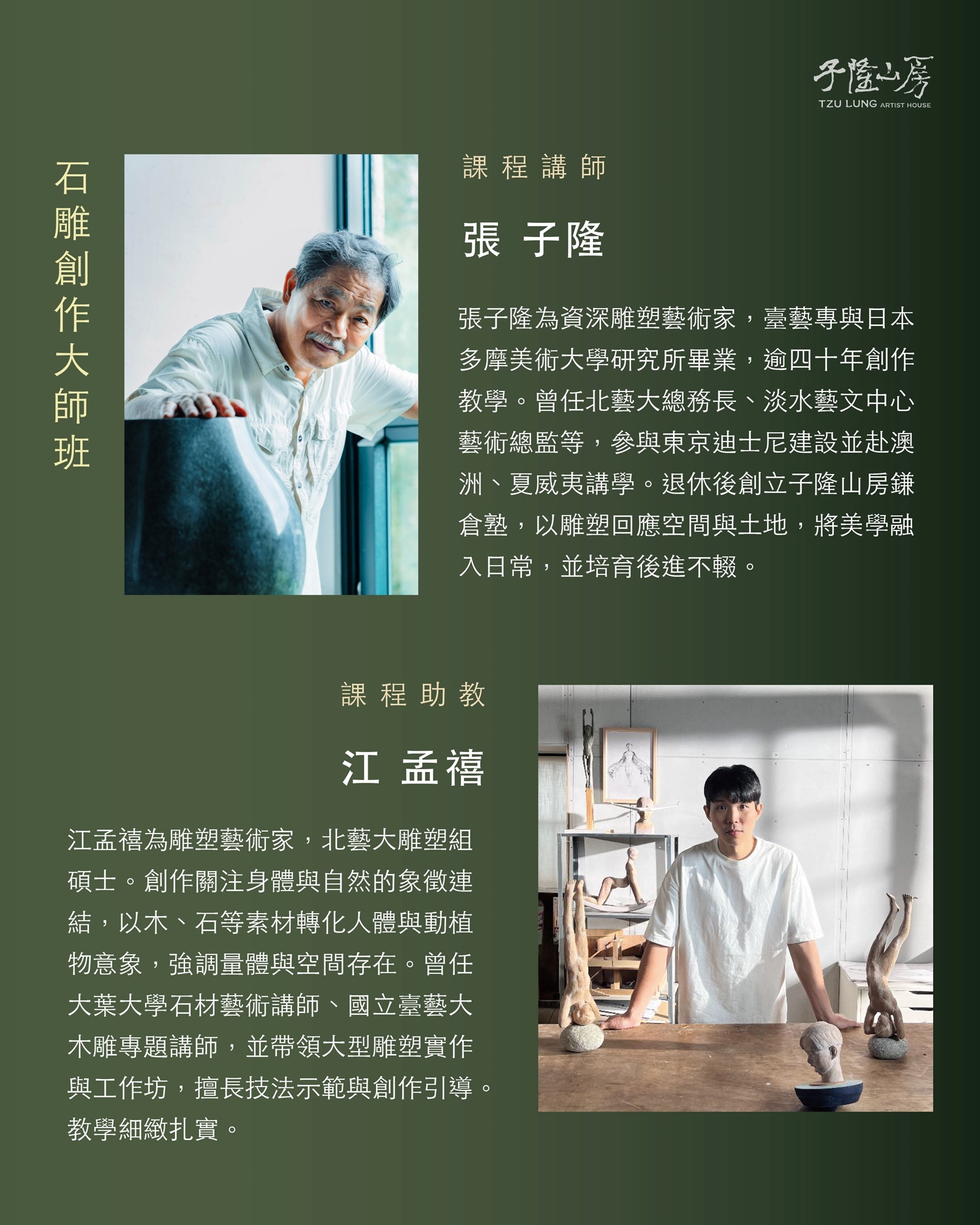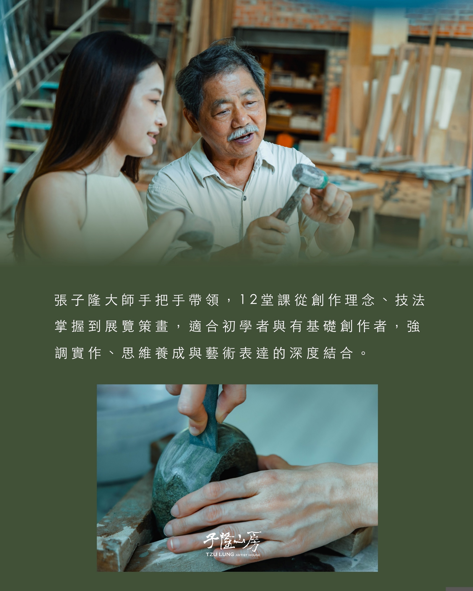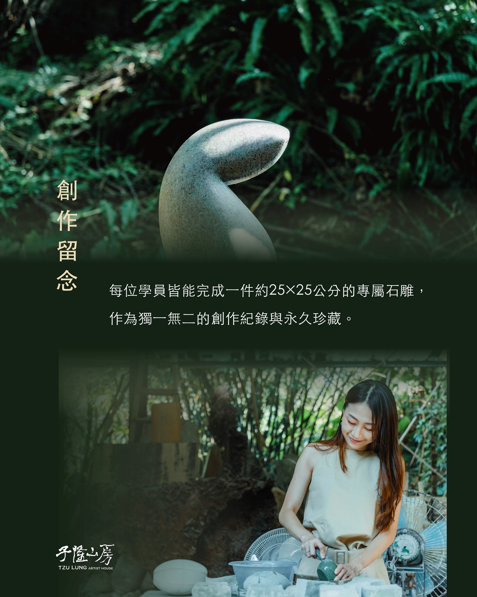 在子隆山房,學習石雕不只是技術上的鍛鍊,更是創造與沈靜交織的生活實踐。當一件件作品在你手中誕生,也是一種自我形塑的歷程。這裡,是藝術與心靈得以安住的所在。