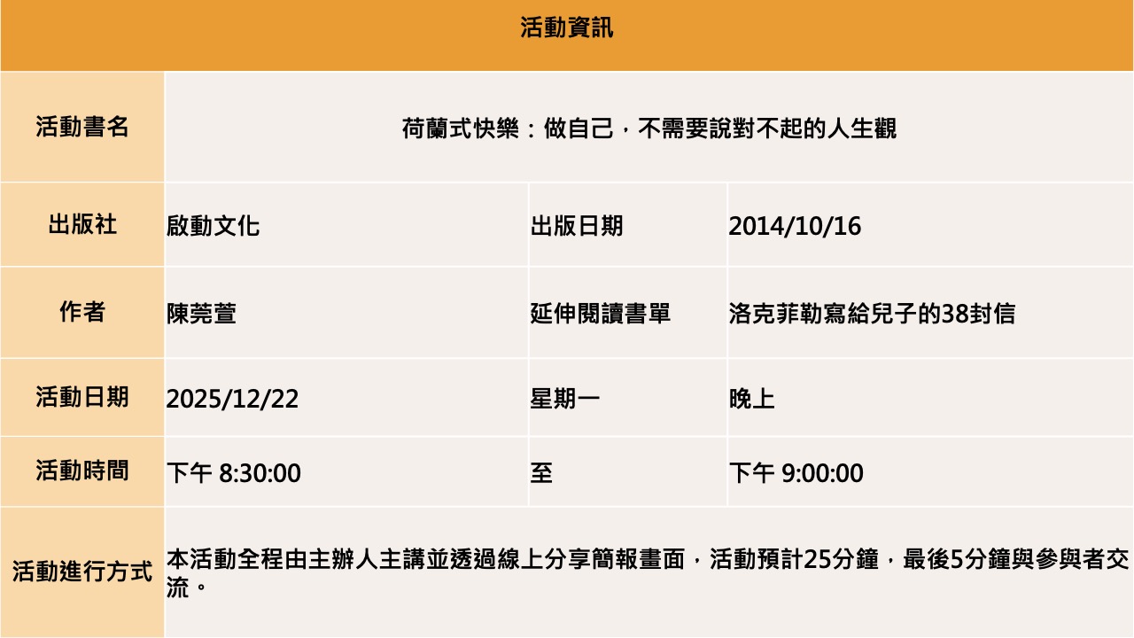 【BookBook預約線上讀書會】 荷蘭式快樂:做自己,不需要說對不起的人生觀