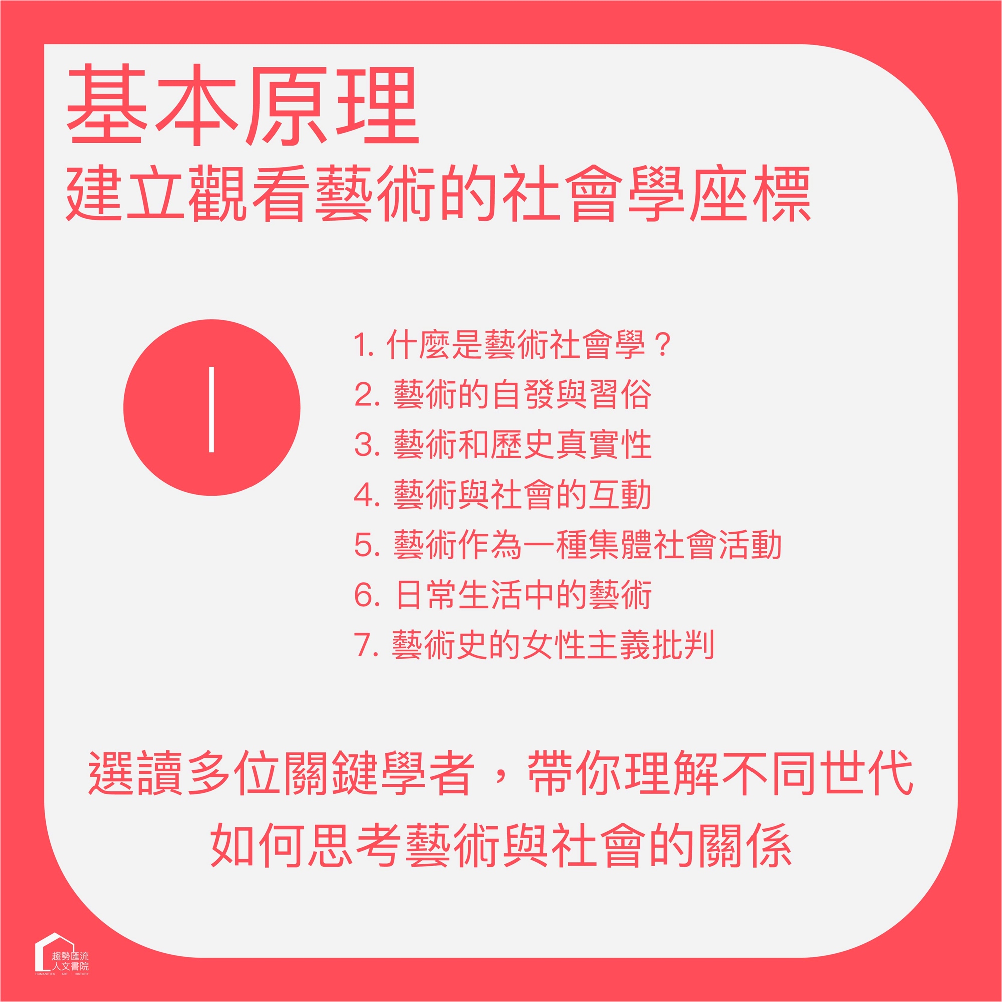 無須社會學背景,也能逐步建立框架;對已有藝術基礎者,則提供更精細的理論深化。