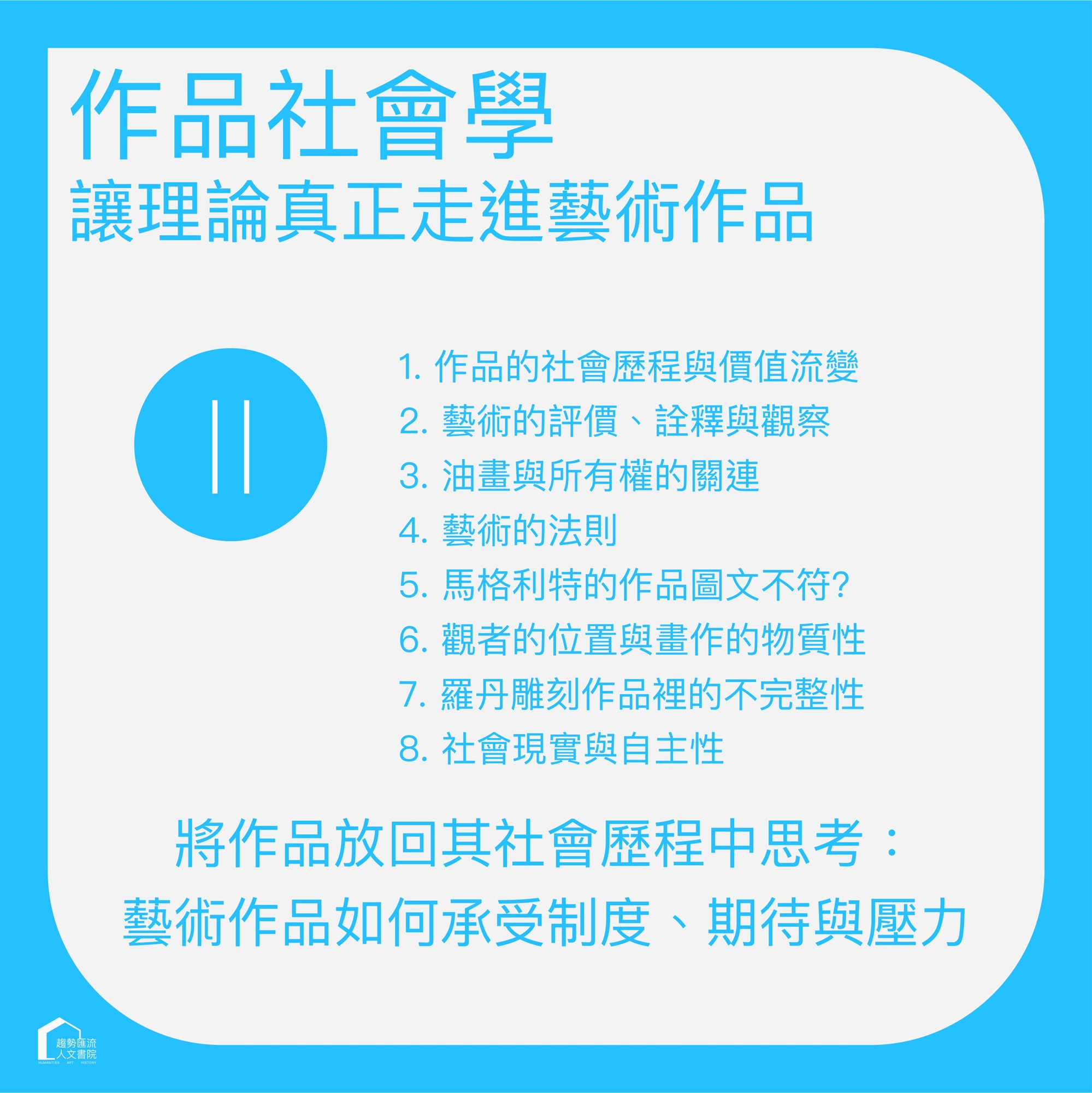不是速讀型課程,而是一套能長期陪伴、反覆觀看的藝術社會學入門與進階指南。