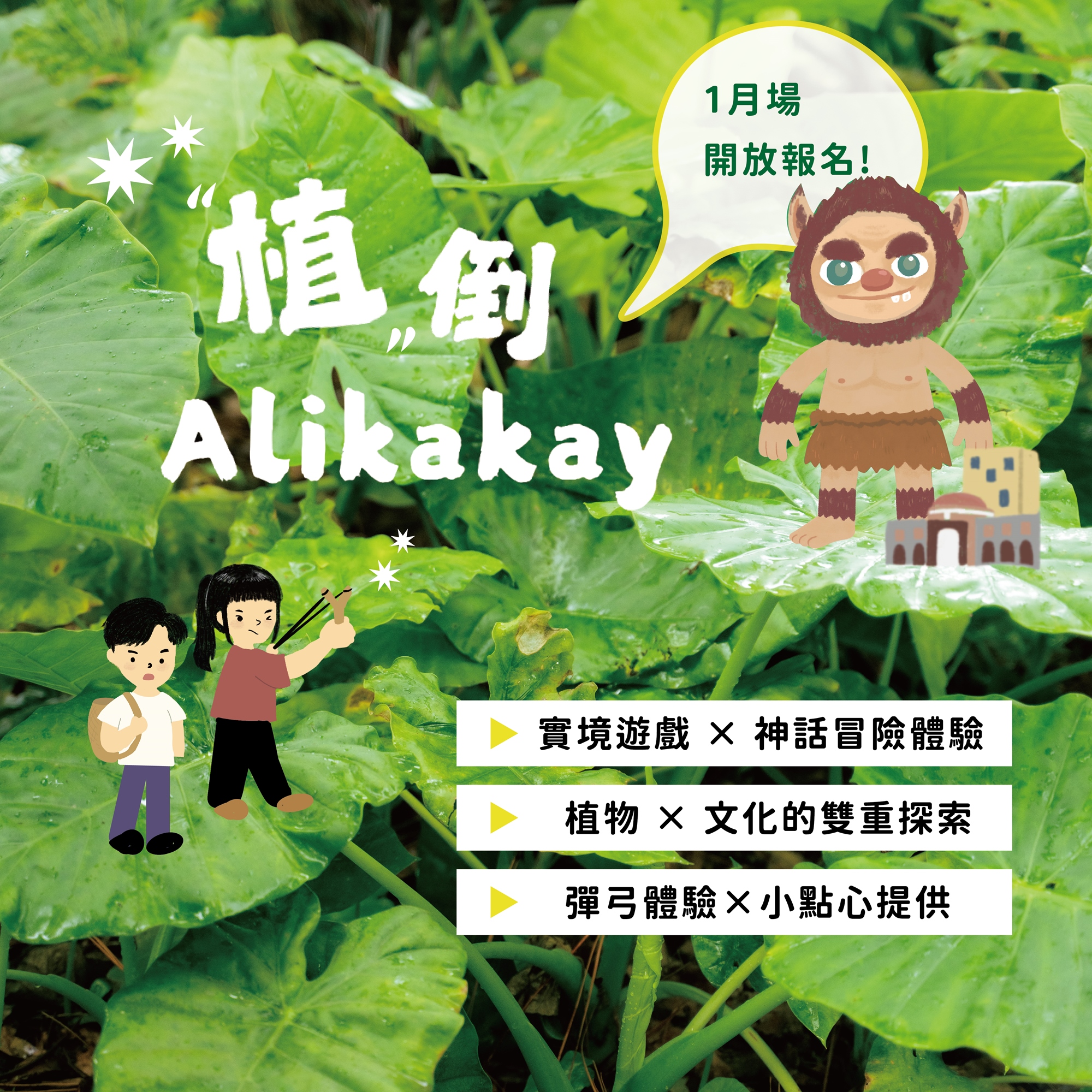 ⭓ 報名資格:因活動中涉及彈弓使用(擊發物件為植物種子)以及手機從旁輔助,建議5歲以上的孩童與成人參與。5歲至11歲孩童建議家長一同參與。