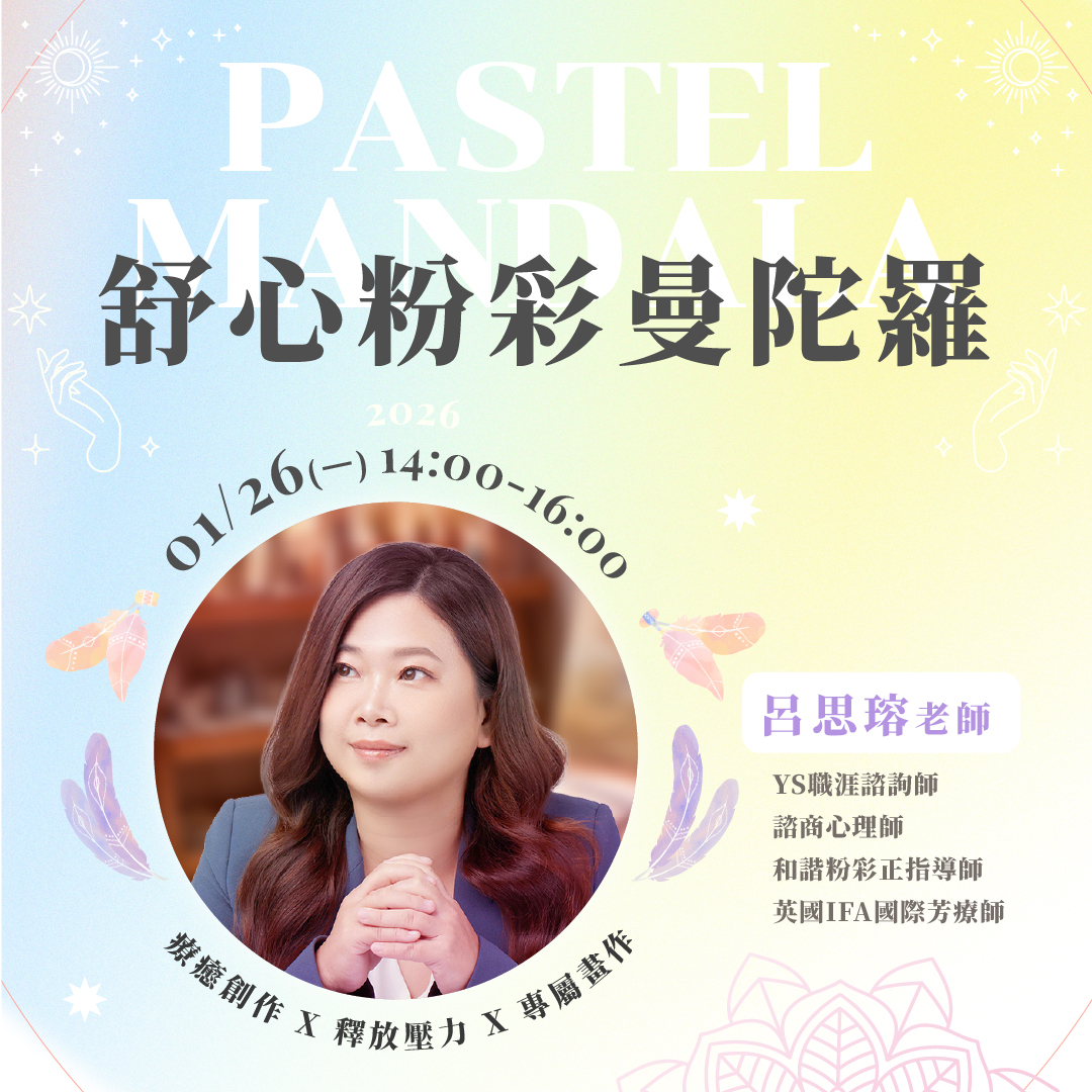 本次課程講師—— YS 職涯諮詢師呂思瑢老師,具備諮商心理師與和諧粉彩正指導師專業,