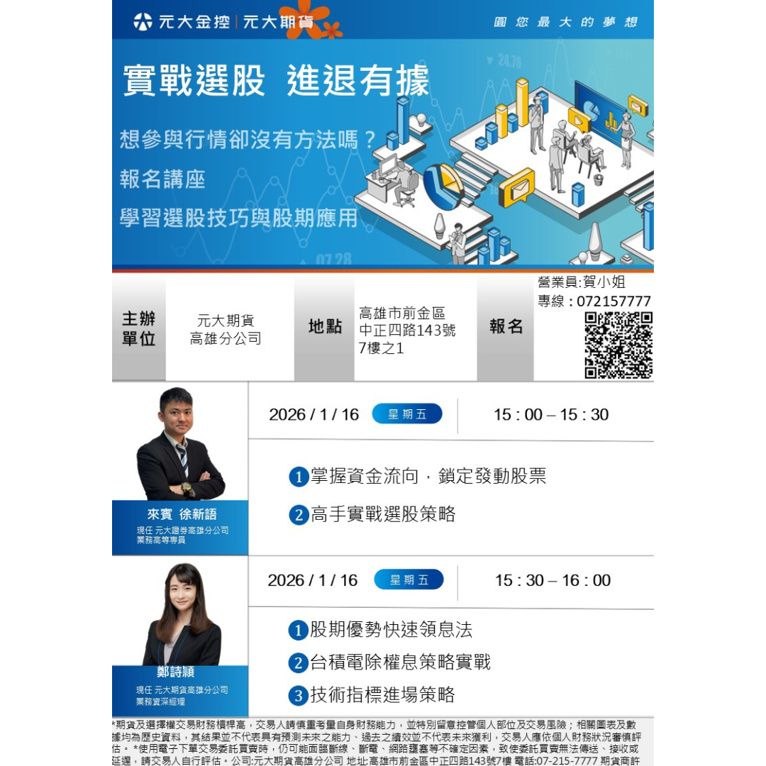 這場講座,將帶你從資金流向、選股策略到股期應用,更有效率的參與除權息,打造專屬於你的投資地圖。