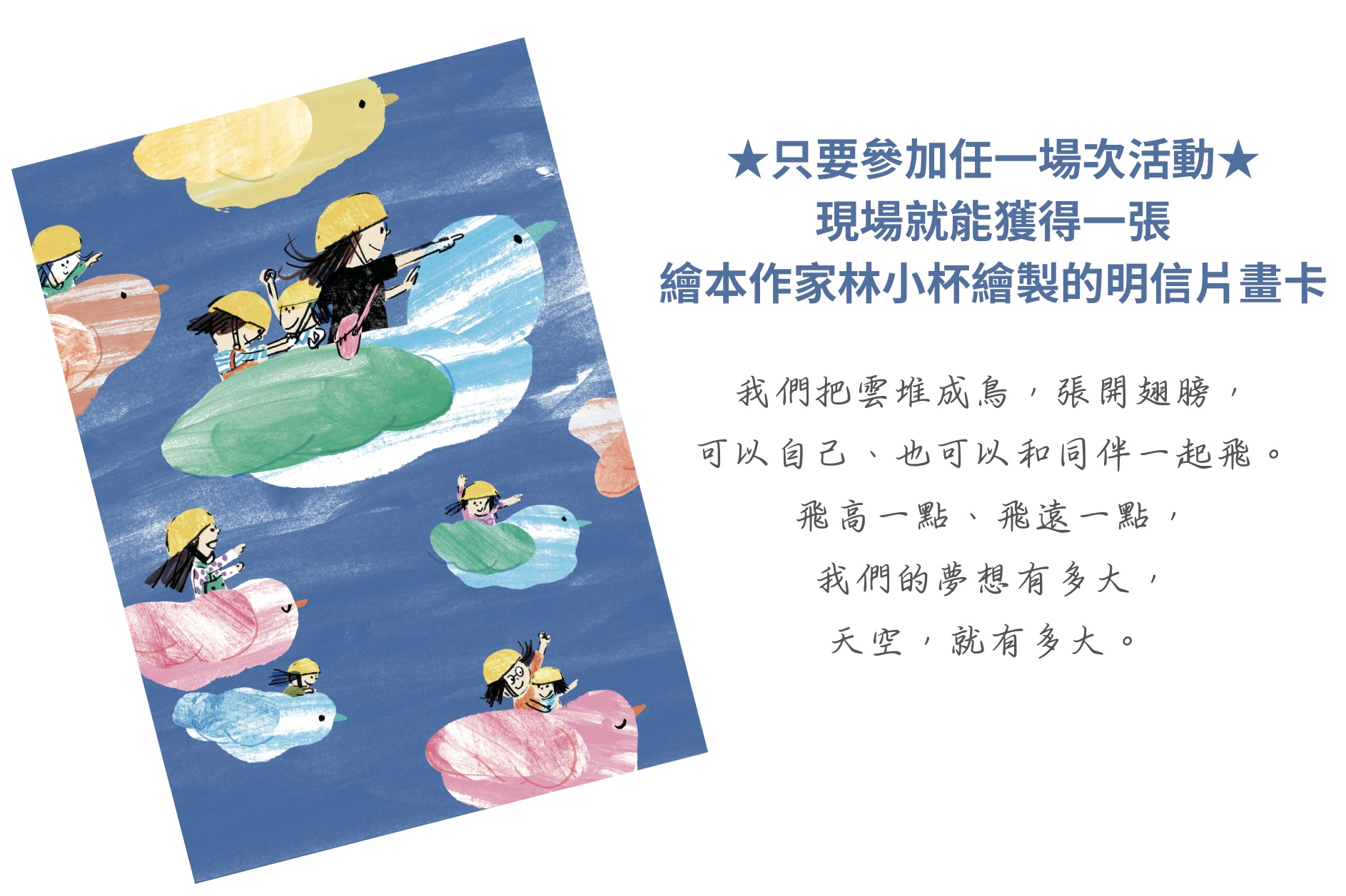 繪本作家林小杯將分享首次以「人權」議題創作的繪本《在鳥籠出生的小綠和他的朋友們》之靈感起源、幕後故事與創作歷程,也會談論自己對於人權議題的關注與所思所想,現場也將展示出版前的草圖、草圖書等,讓讀者得以了解創作者打磨作品的珍貴歷程,最後還有書迷簽書會喔!