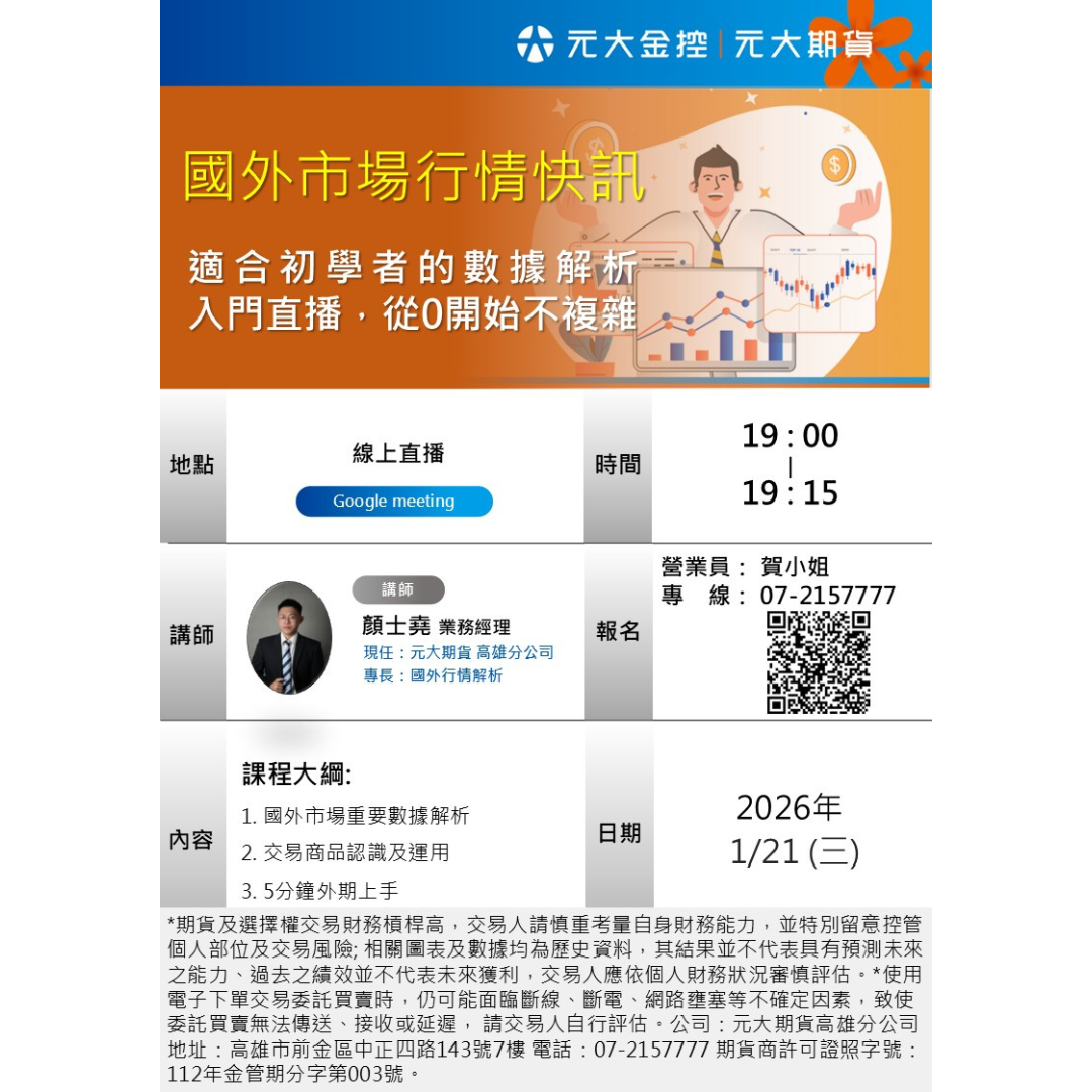 【國外行情快訊直播】114/01/21 19:00 不要錯過