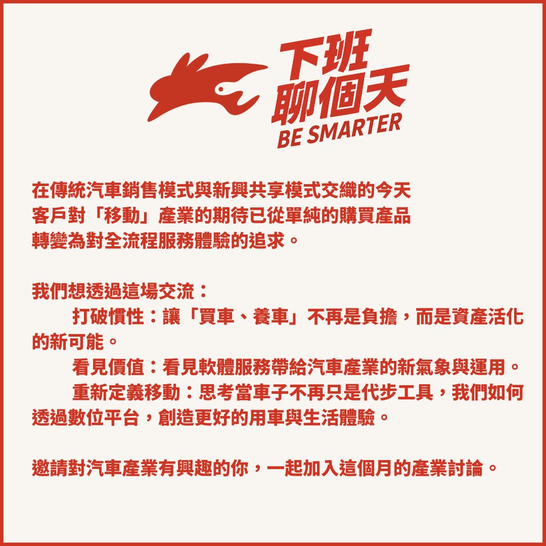 3️⃣ 重新定義移動:思考當車子不再只是代步工具,我們如何透過數位平台,創造更好的用車與生活體驗。