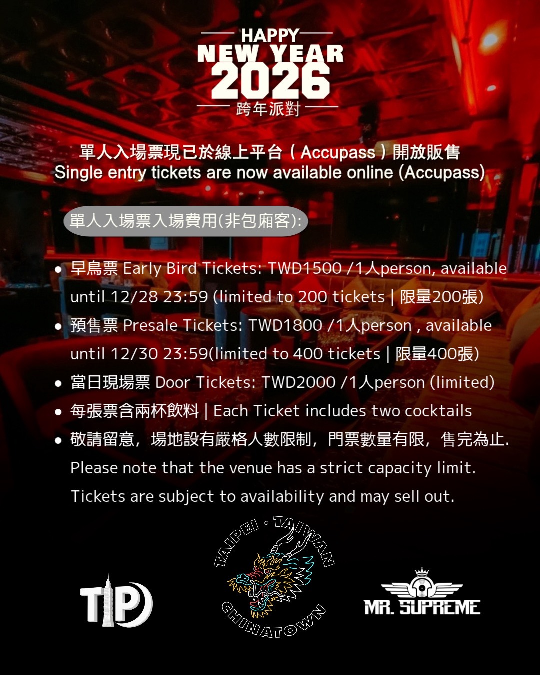 現場票 : $2000/人 12/31 00:00至12/31 12:00前