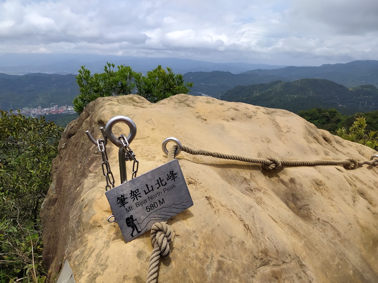 筆架山北峰(海拔 580m):峰頂是一塊巨大的裸岩,視野極佳,可以清楚俯瞰深坑、石碇,並遠眺台北 101 大樓。