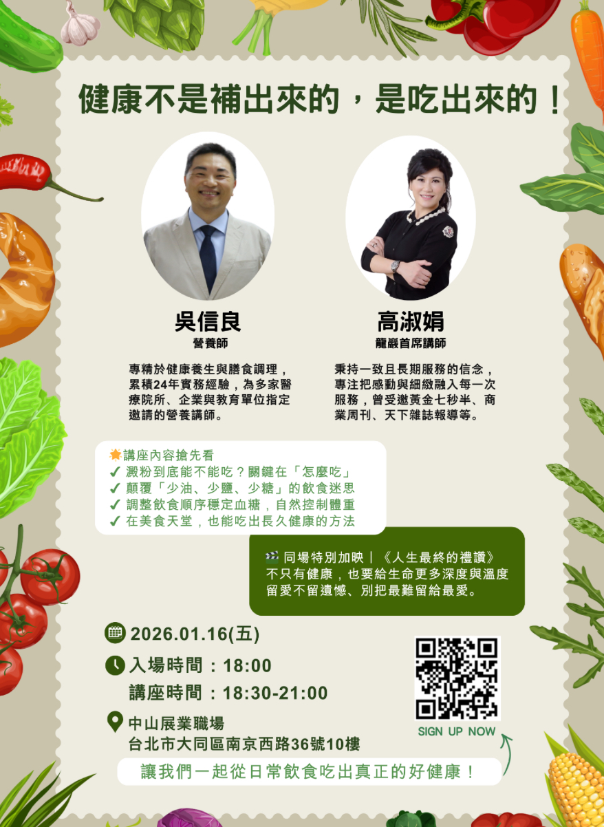 💁🏻♀️因現場備有餐盒,入場時間微調為 18:00–18:30,可以讓您先安心享用點心餐點。