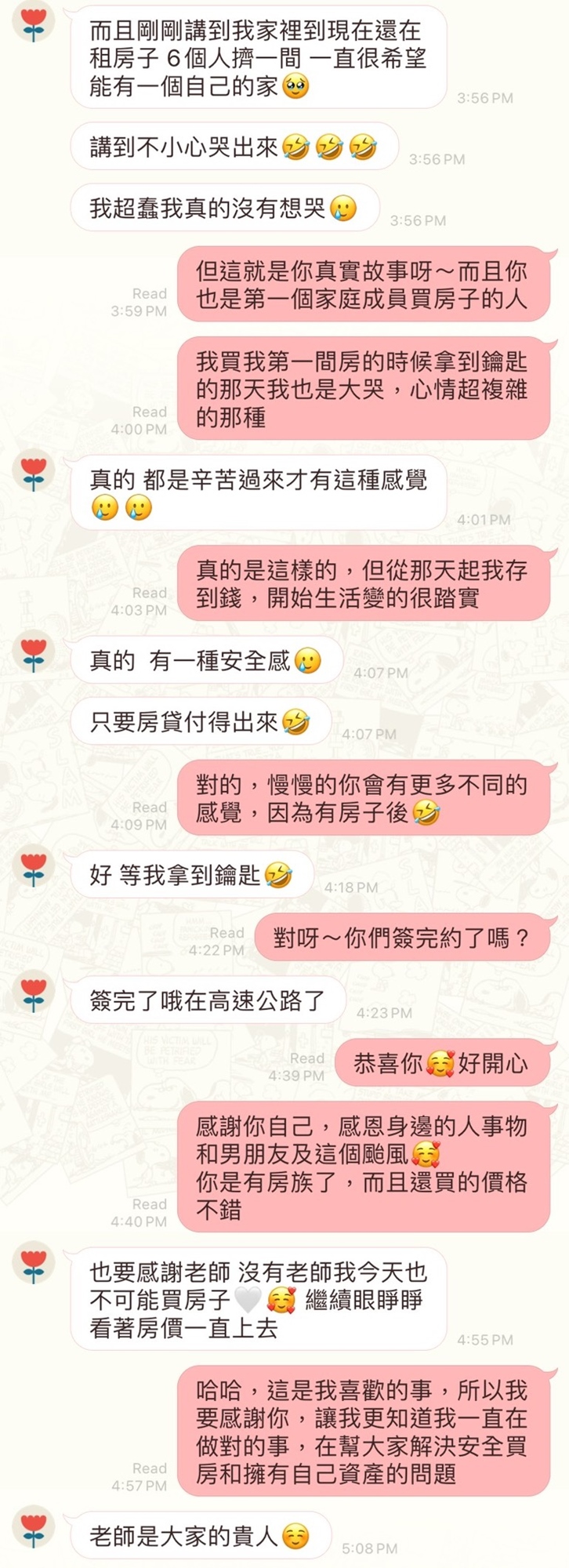 - 我希望透過房產這個工具,幫助他們把「安全感」轉化成「選擇權」,把「存錢」轉化成「會長大的資產」。