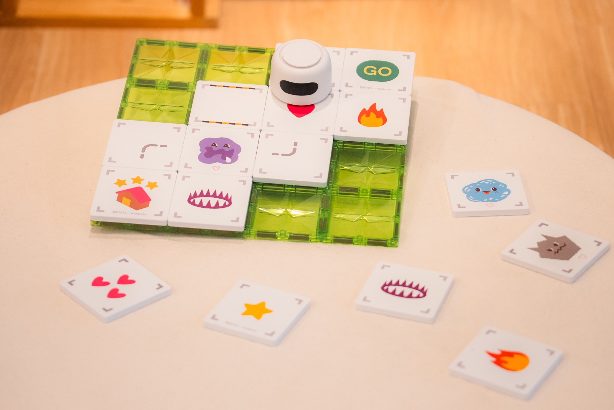 🤖 把程式語言變實體化 不用螢幕、不點平板!|我們將看不見的指令變成一片片「 指令磁力片 」。孩子透過雙手編排路徑,直覺地理解程式序列與邏輯思維。